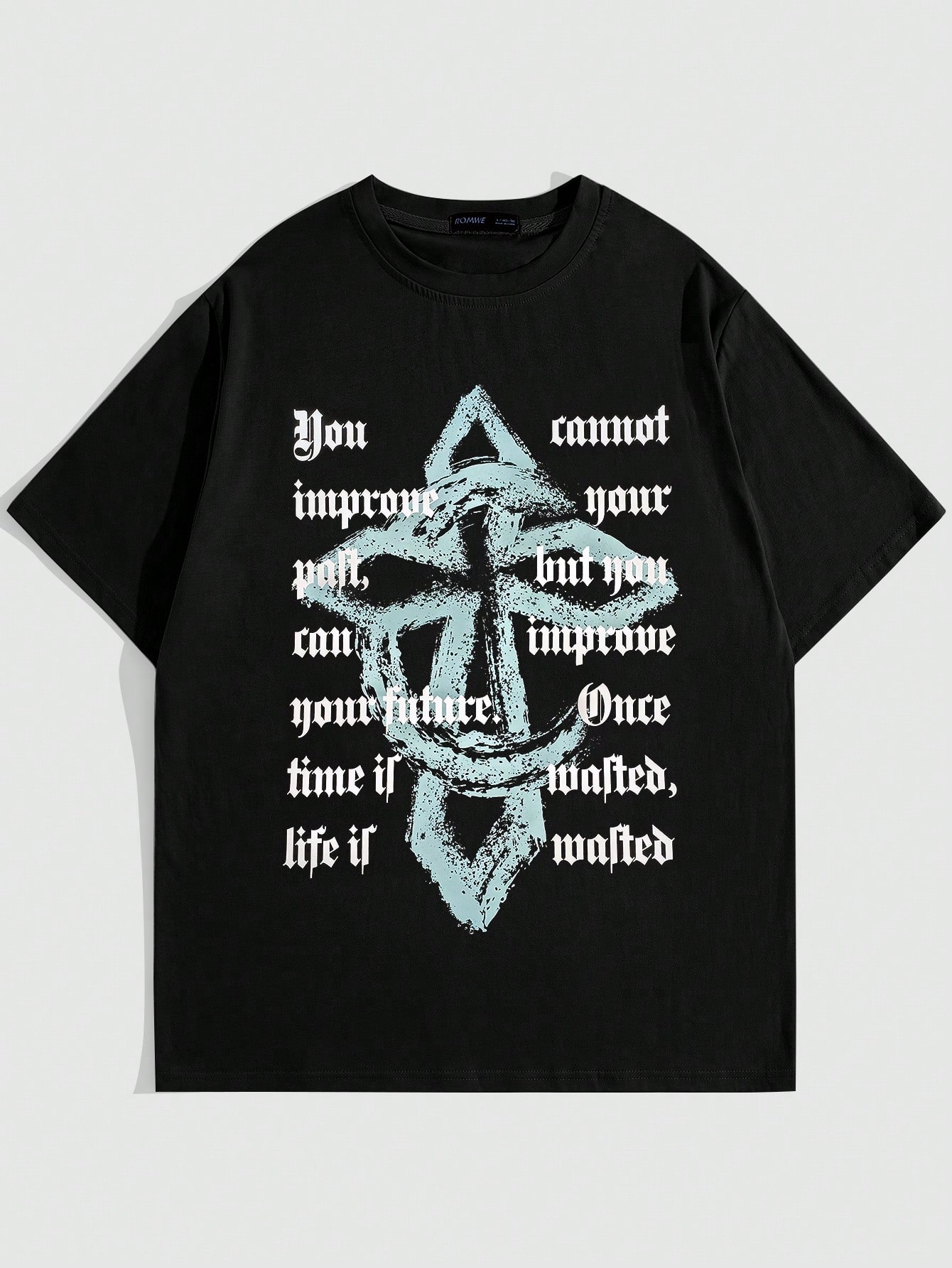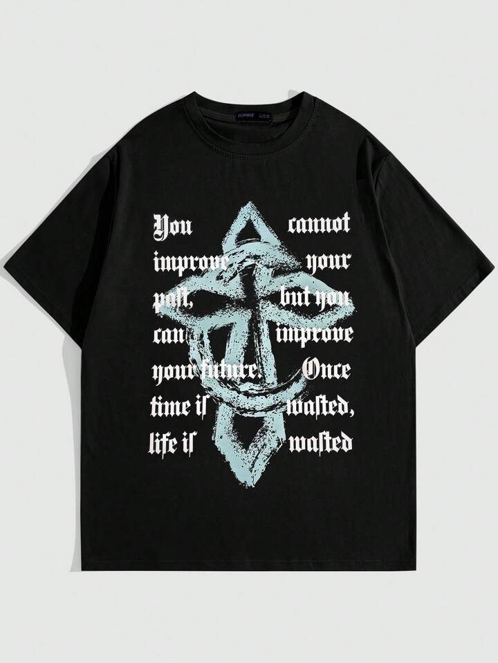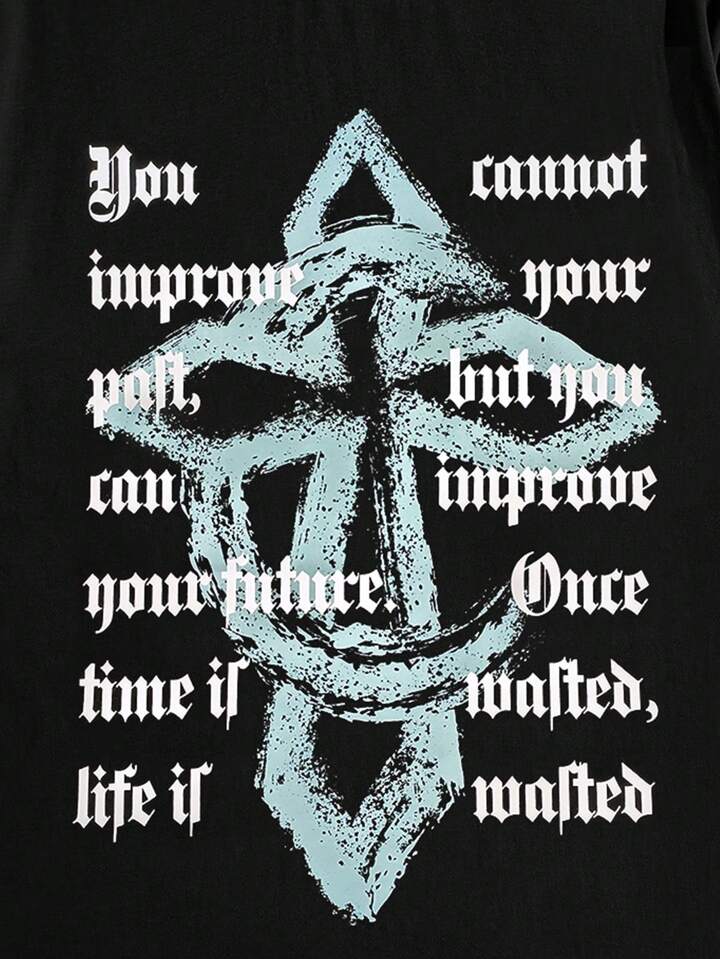 Goth T-shirt Pour Hommes Imprimé Avec Slogan Et Croix