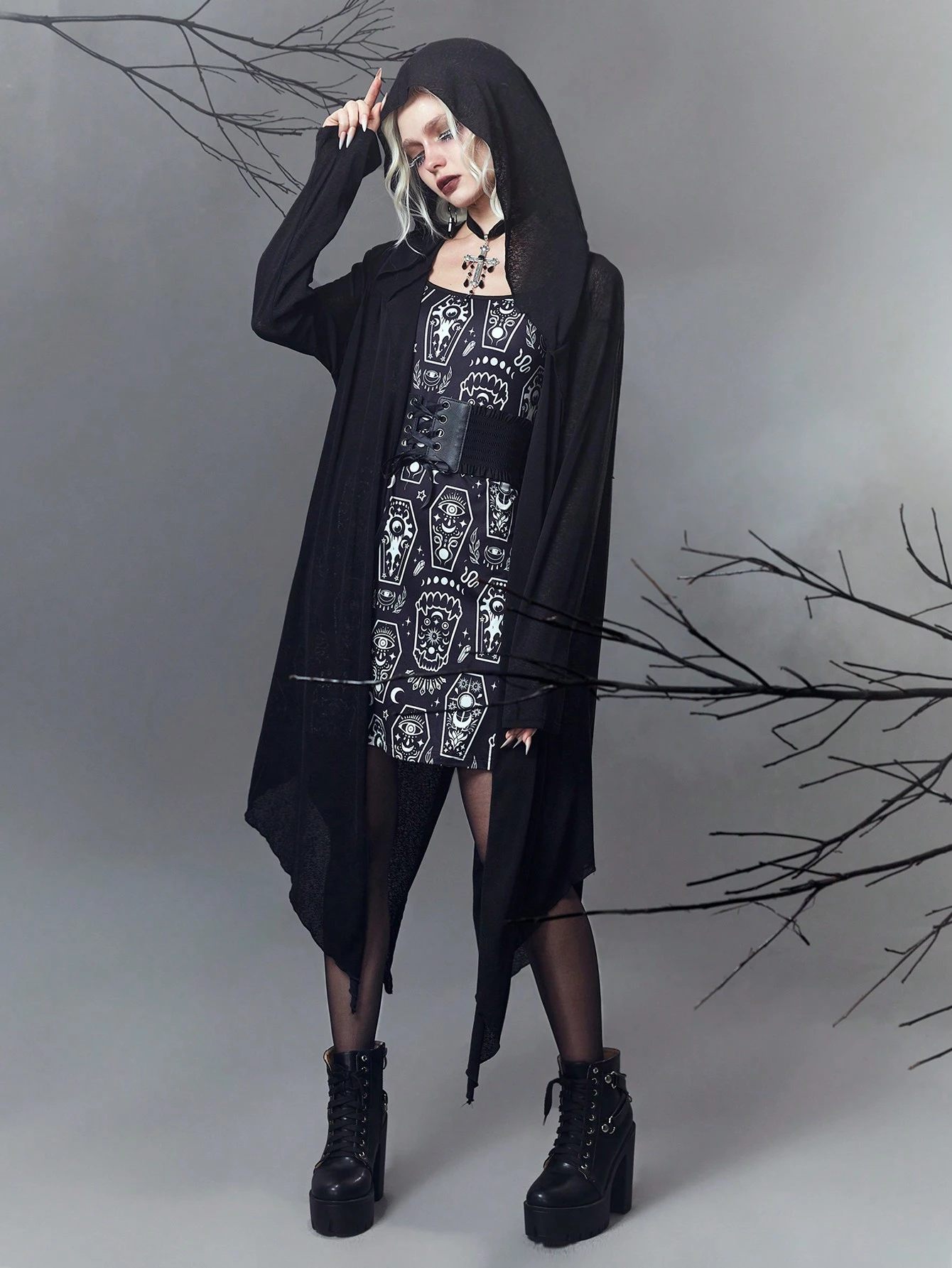 Goth Vêtements D'extérieur À Capuche Avec Ourlet Asymétrique Et Sangle Arrière