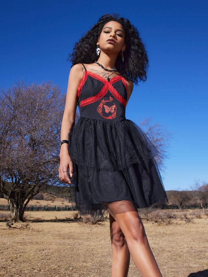Goth Robe en dentelle papillon