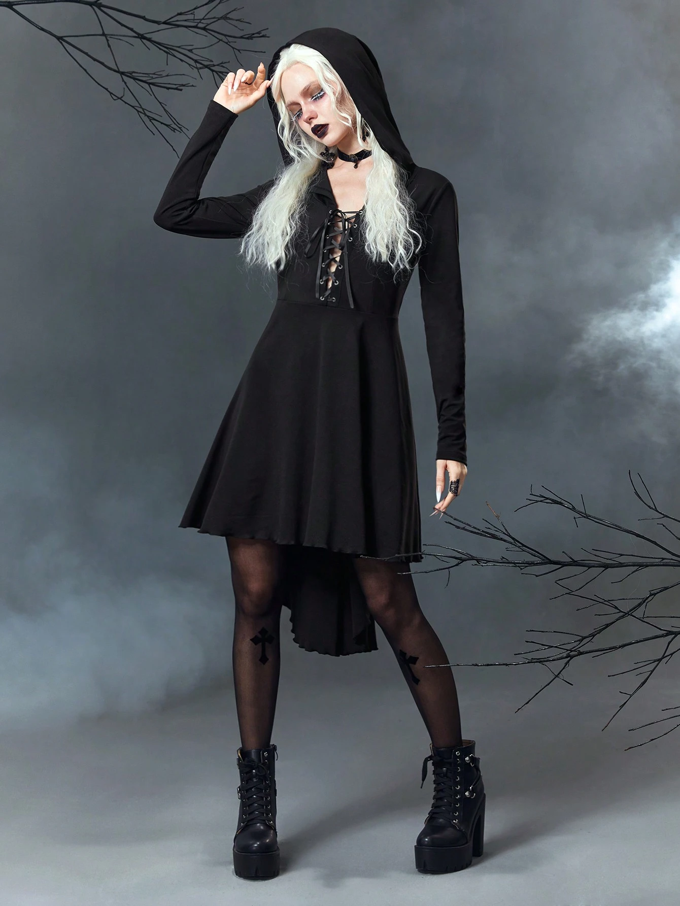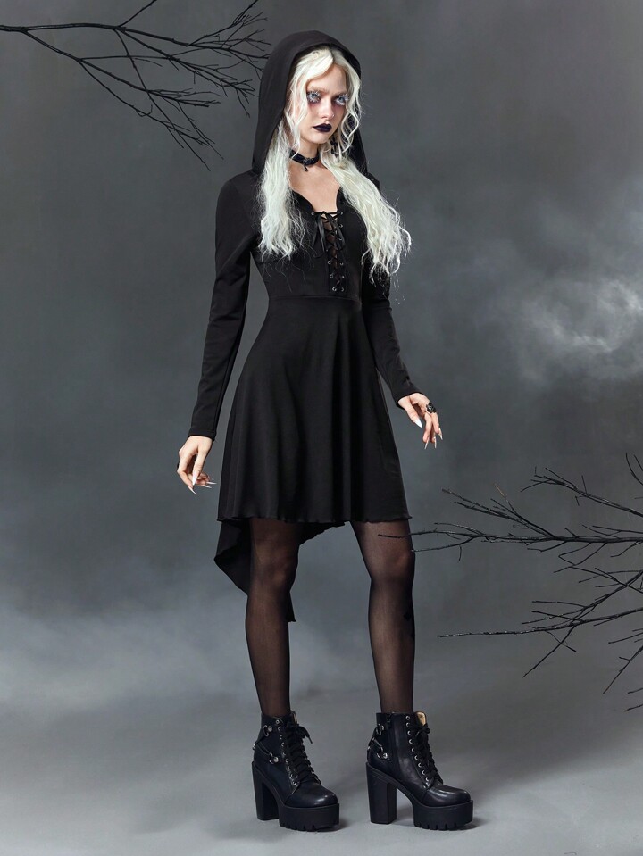 Goth Robe À Capuche À Lacets