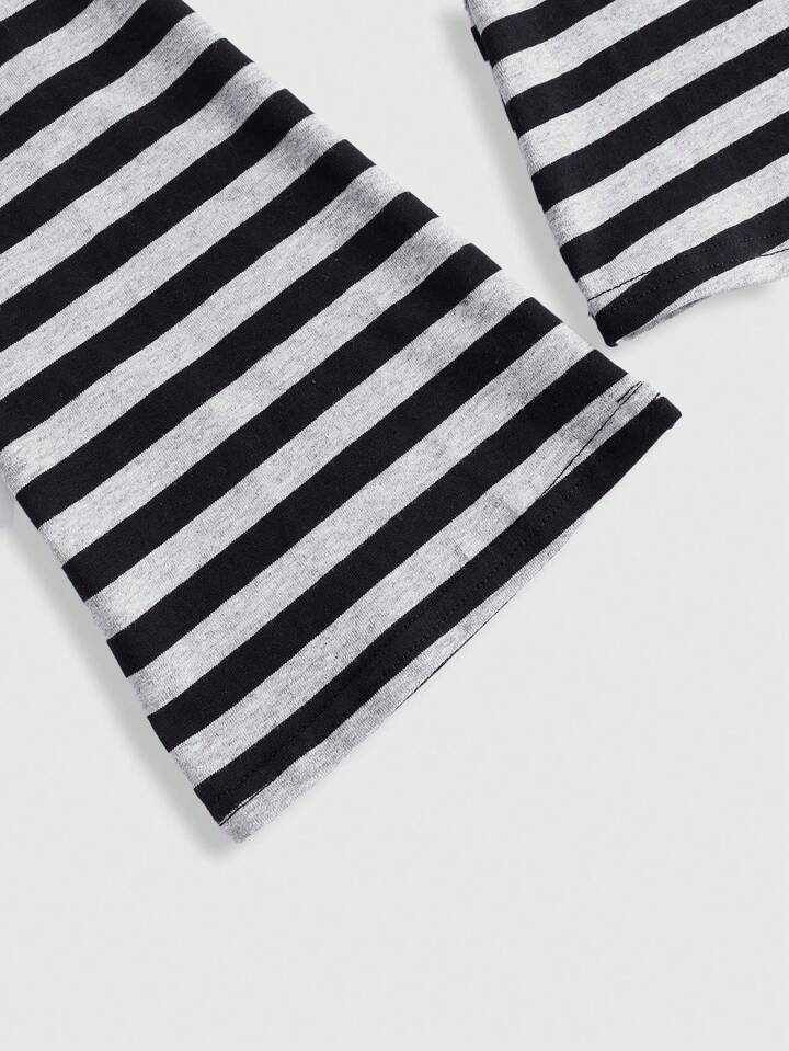 Goth T-shirt À Manches Cloches Pour Dames À Rayures Et À Empiècement En Dentelle