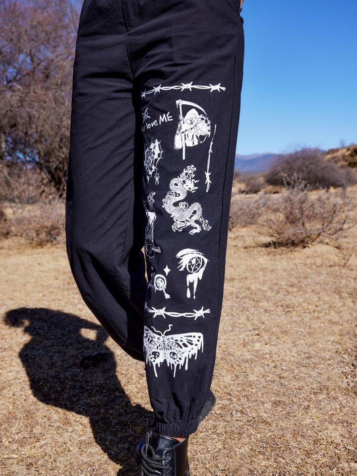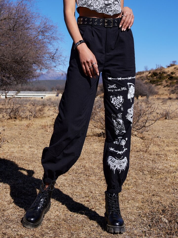 Goth Pantalon lettre papillon