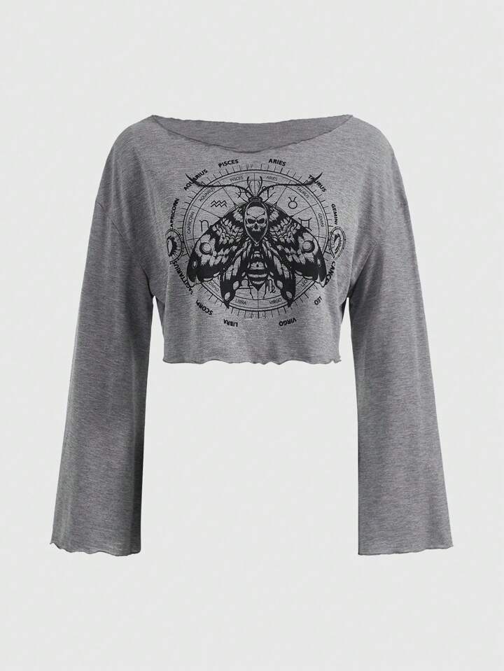 Goth T-shirt À Lettres À Ourlet Ondulé