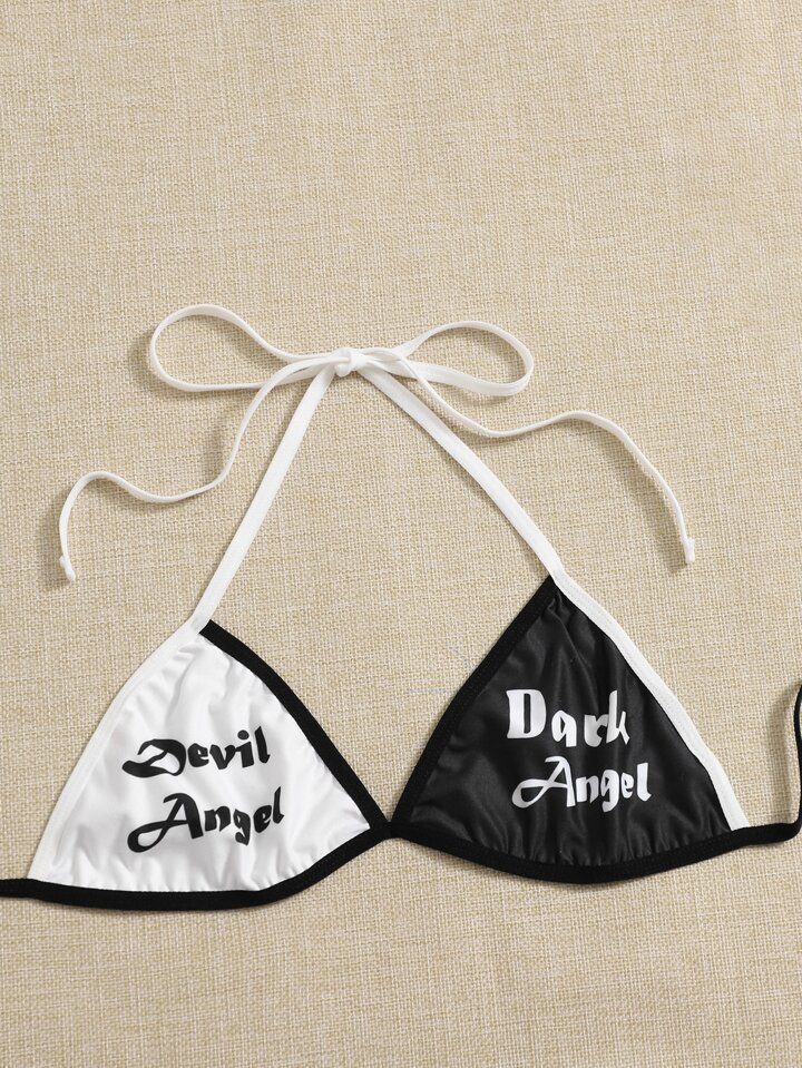 Goth Ensemble de lingerie lettre à motif tête de mort à blocs de couleurs ras-du-cou à nœud