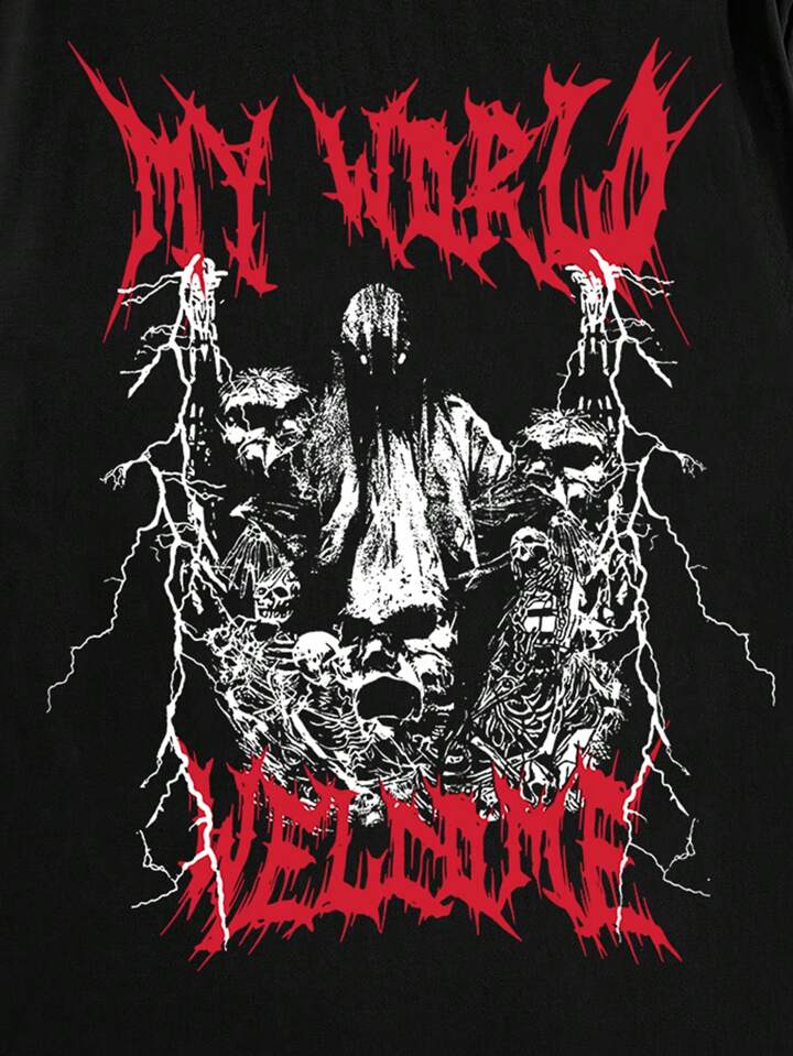 Goth T-shirt en coton à imprimé crâne et lettres pour hommes, école