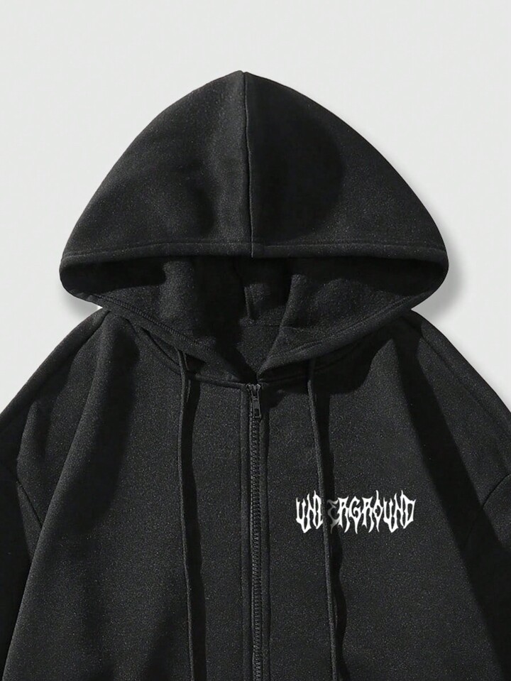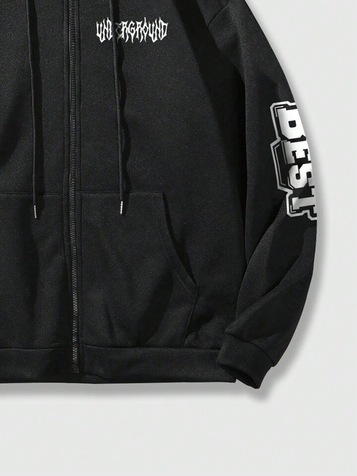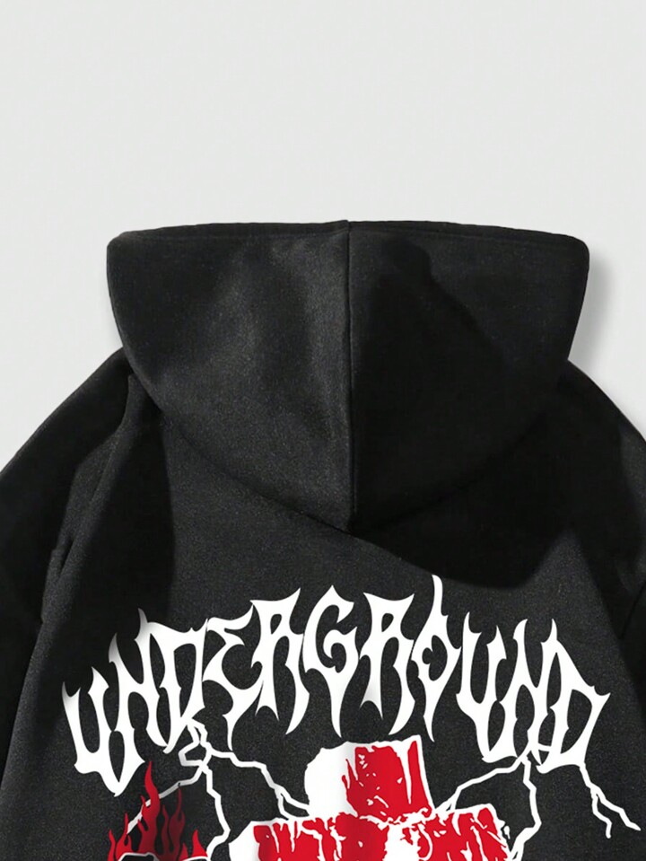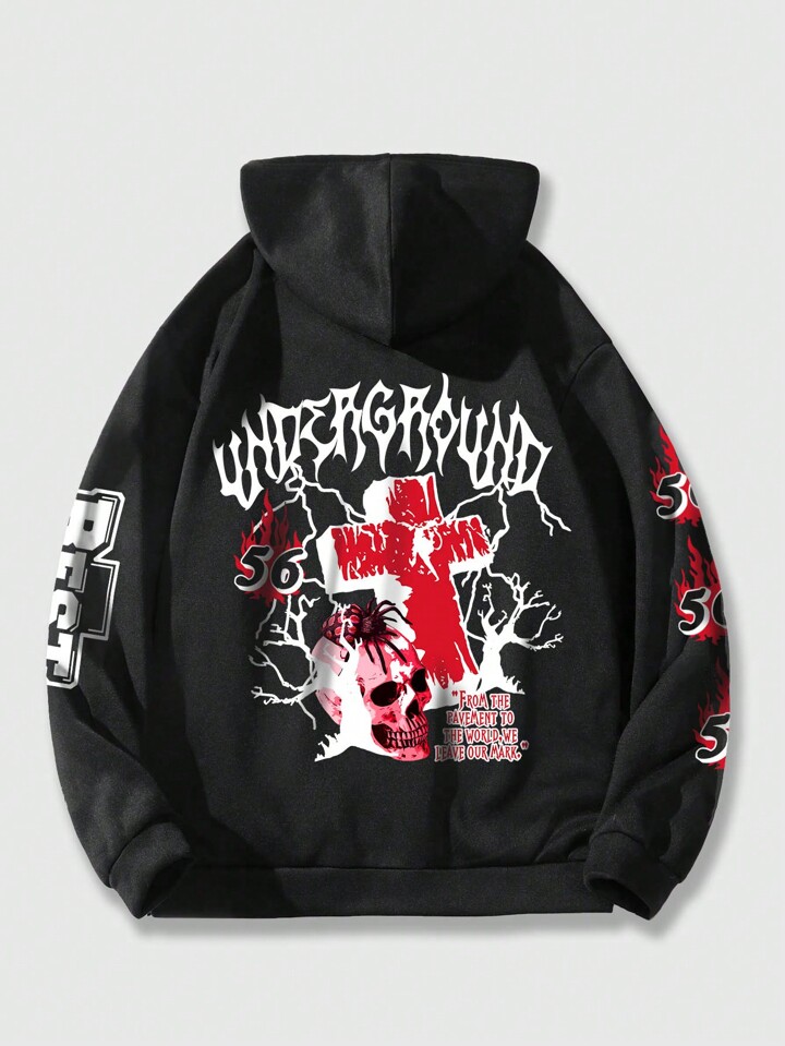 Goth Sweat-shirt À Capuche Avec Cordon De Serrage Pour Homme Avec Imprimé Lettre Et Crâne