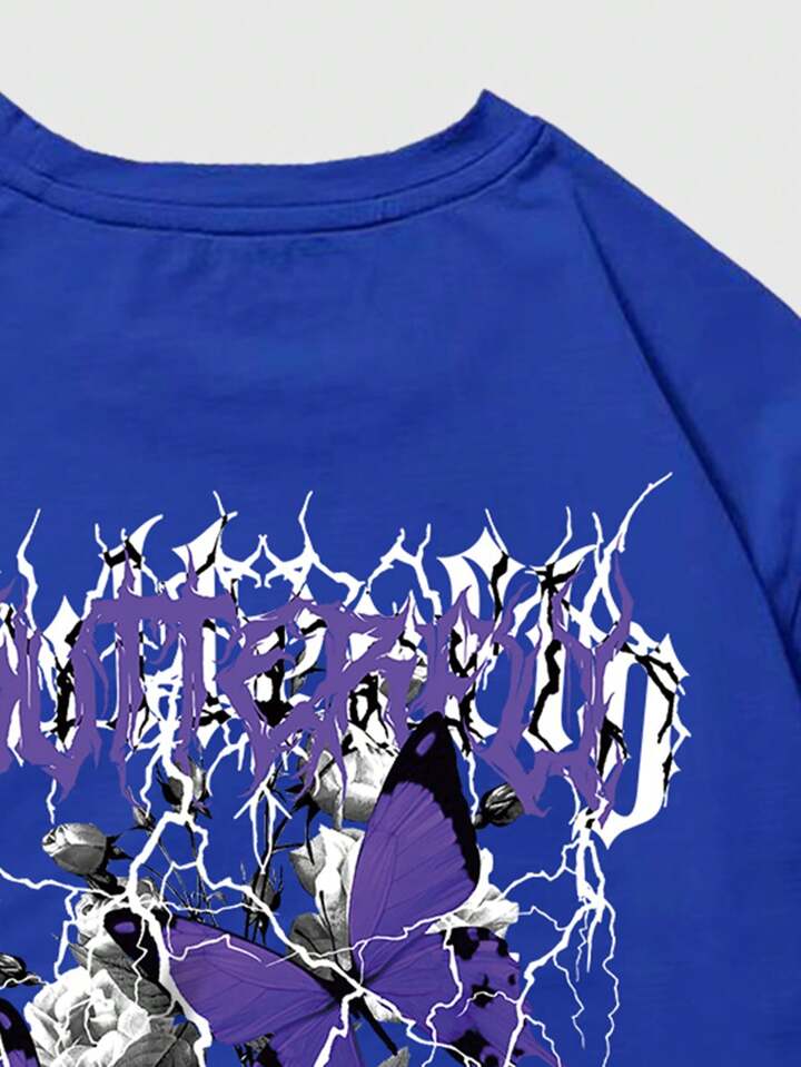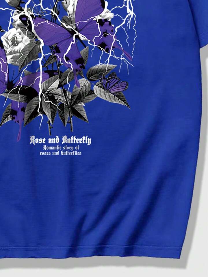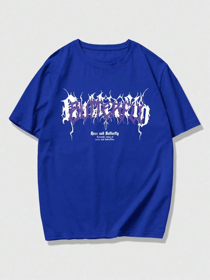 Goth T-shirt À Manches Courtes Pour Homme, Motif De Lettre Et De Fleur