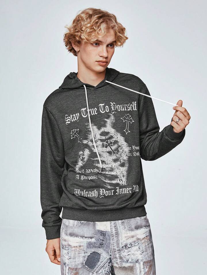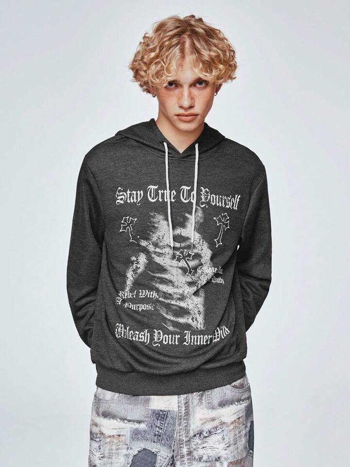 Goth Sweat-shirt À Capuche À Cordon De Serrage Graphique Avec Slogan Pour Homme