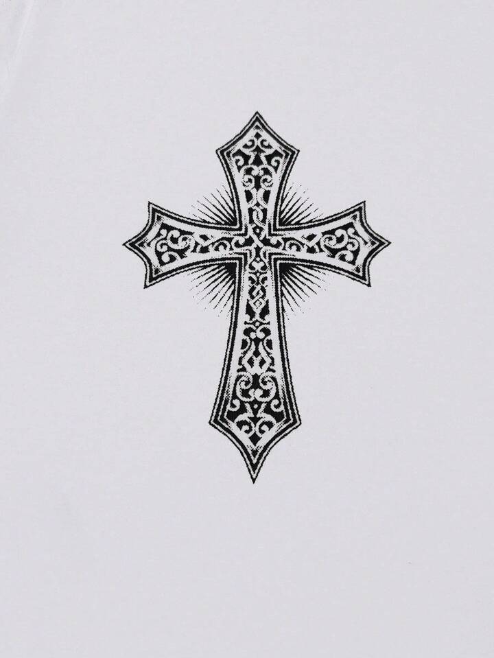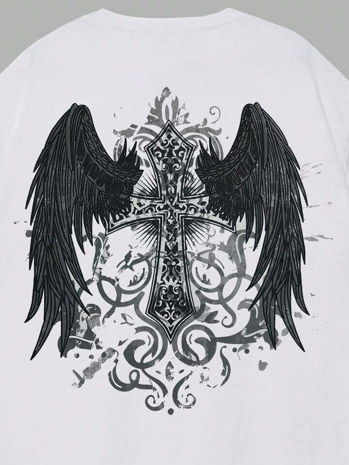 Goth T-shirt imprimé ailes pour hommes, école