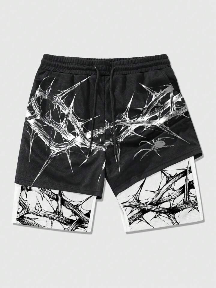 Goth Short de basket-ball sport à imprimé dragon pour homme, design 2 en 1, convient pour le port quotidien, printemps/été