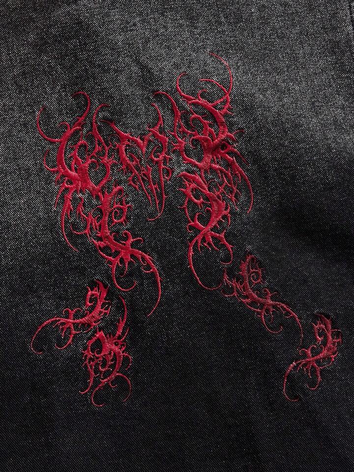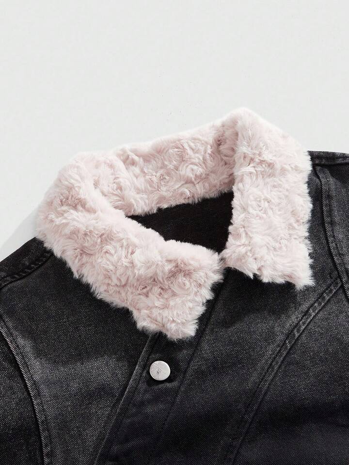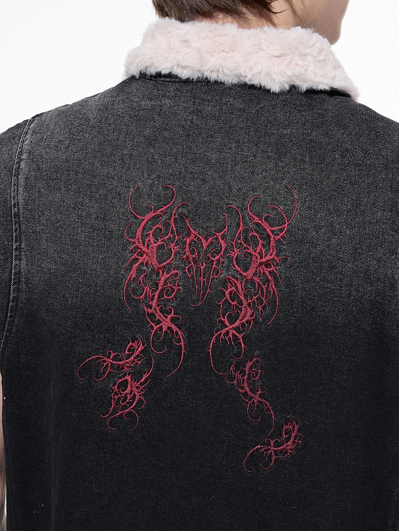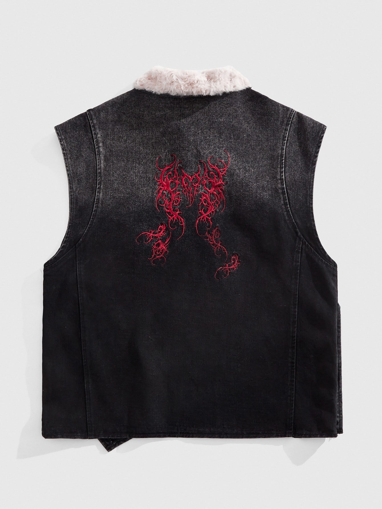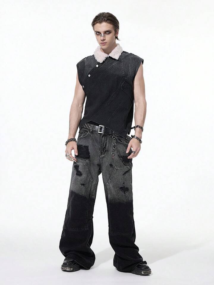 Goth Gilet en denim à col en polaire et patte de boutonnage oblique pour hommes, pour l'automne