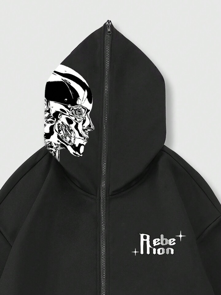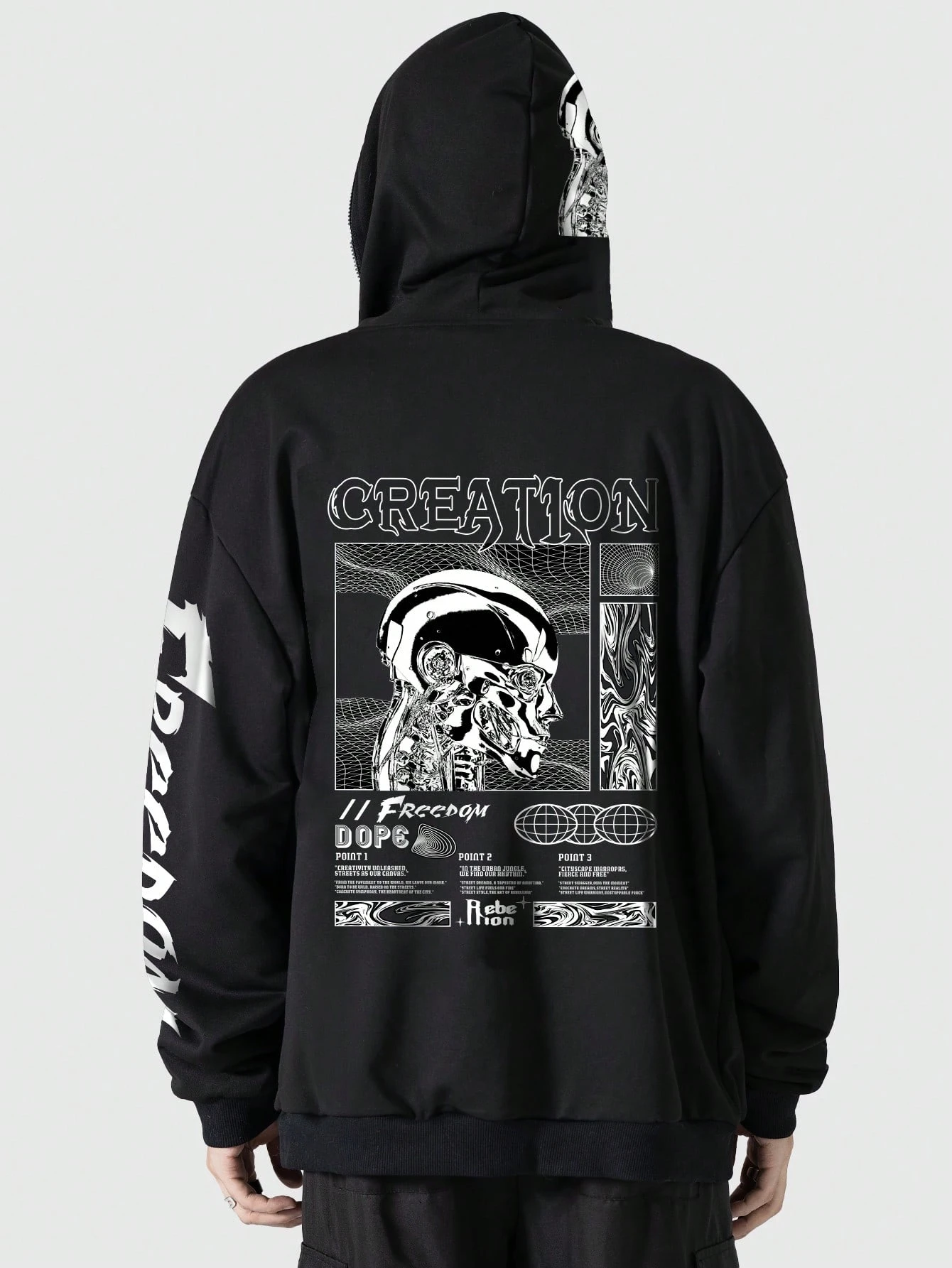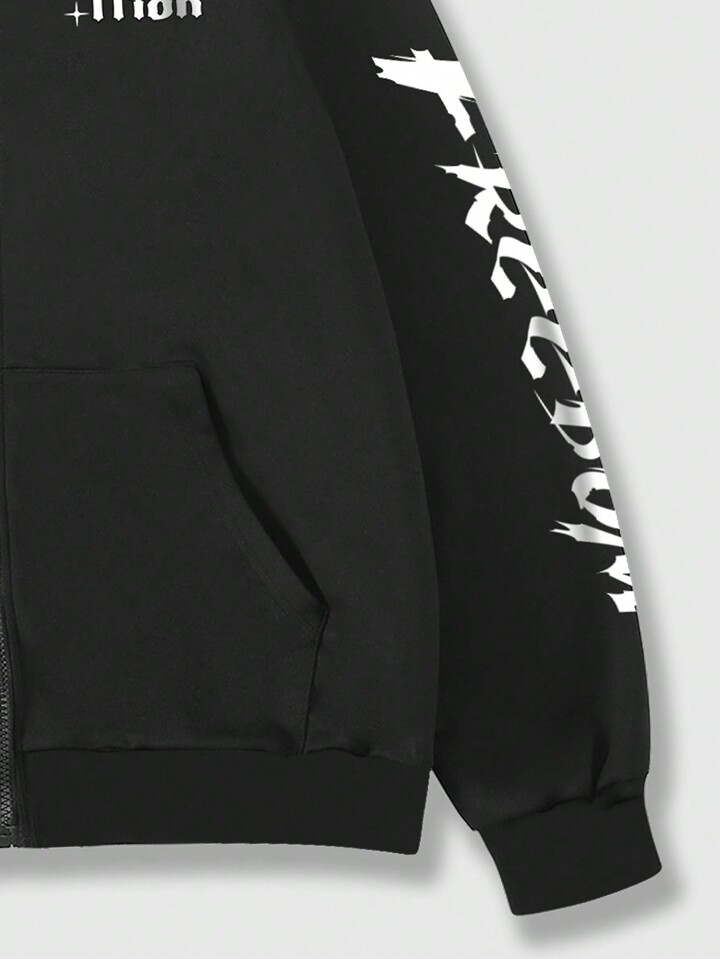 Goth Sweat À Capuche Zippé Noir Pour Hommes Avec Imprimé Au Dos