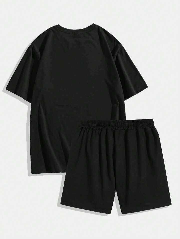 Goth Ensemble T-shirt Et Shorts Pour Hommes Avec Portrait Flou Imprimé