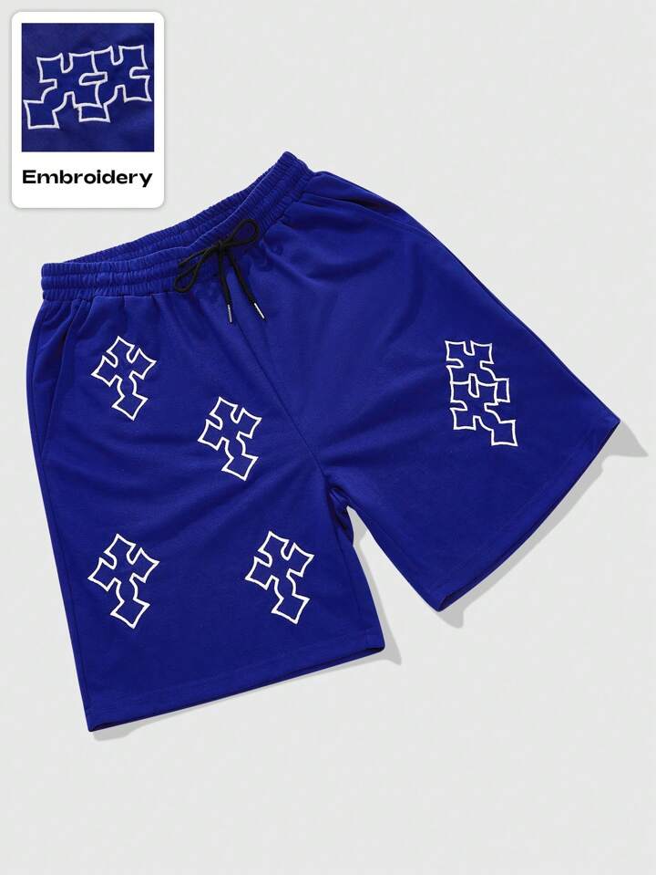 Goth Short de sport casual avec broderie croix, pour homme, pour l'été