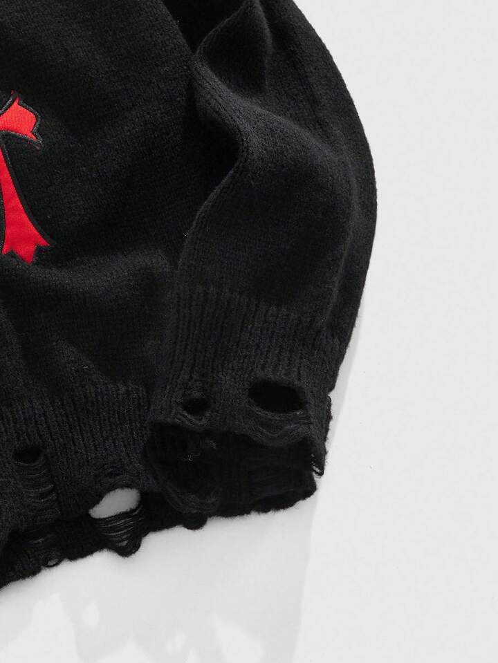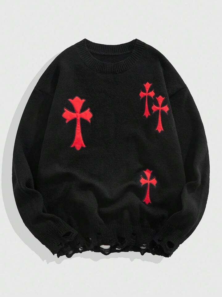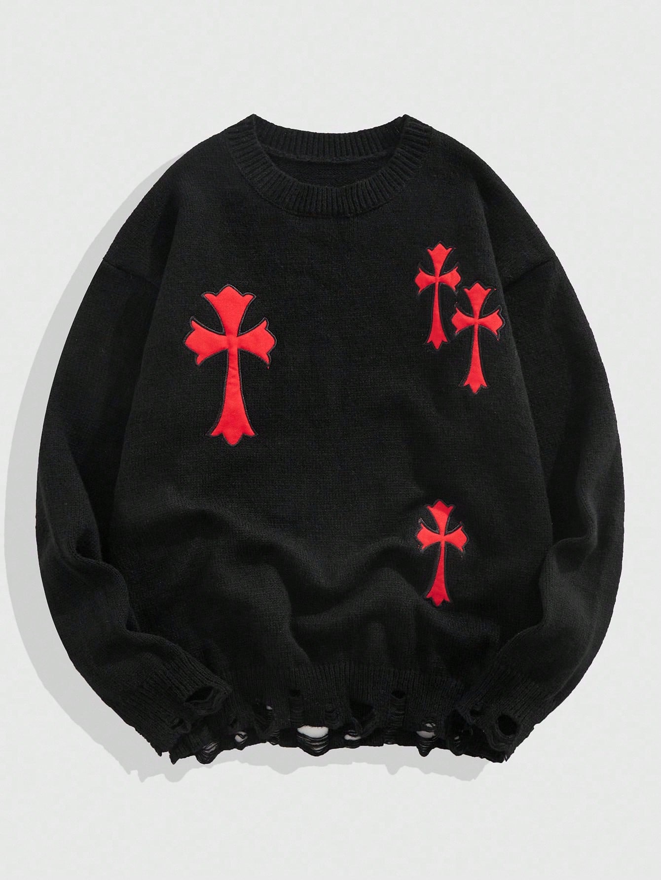 Pull décontracté pour hommes avec broderie croisée et effet délavé, automne/hiver
