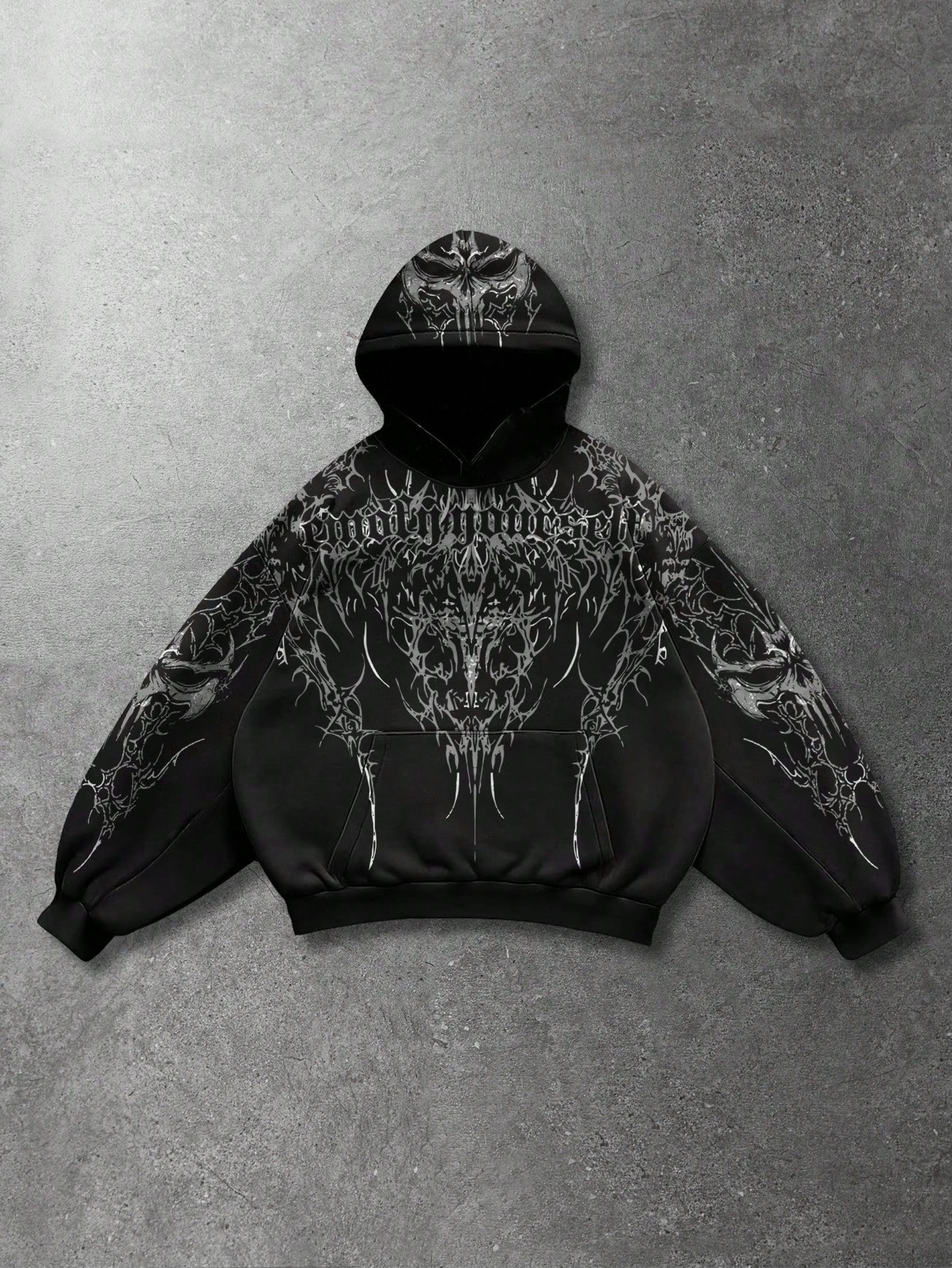Goth sweat-shirt à capuche ample et décontracté avec imprimé graphique pour hommes