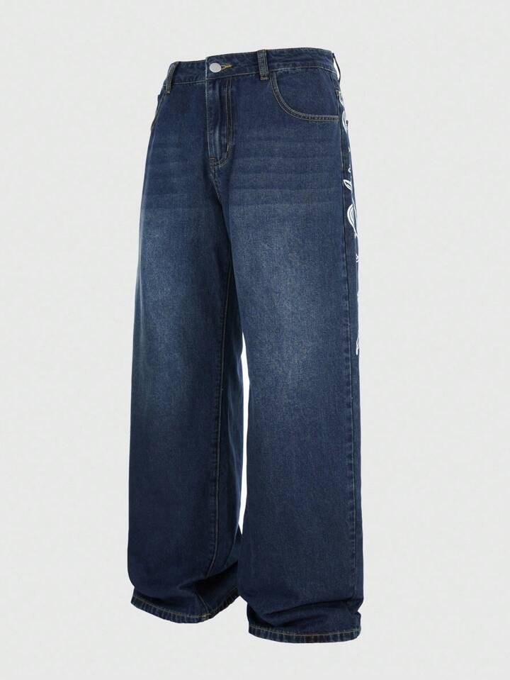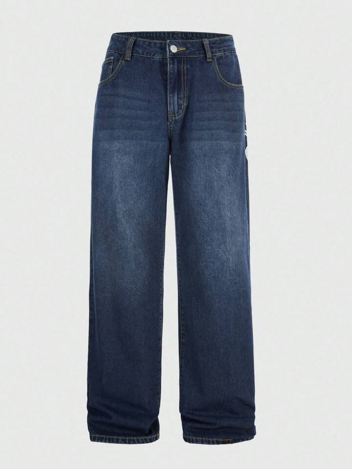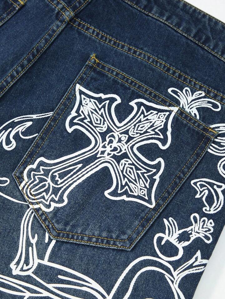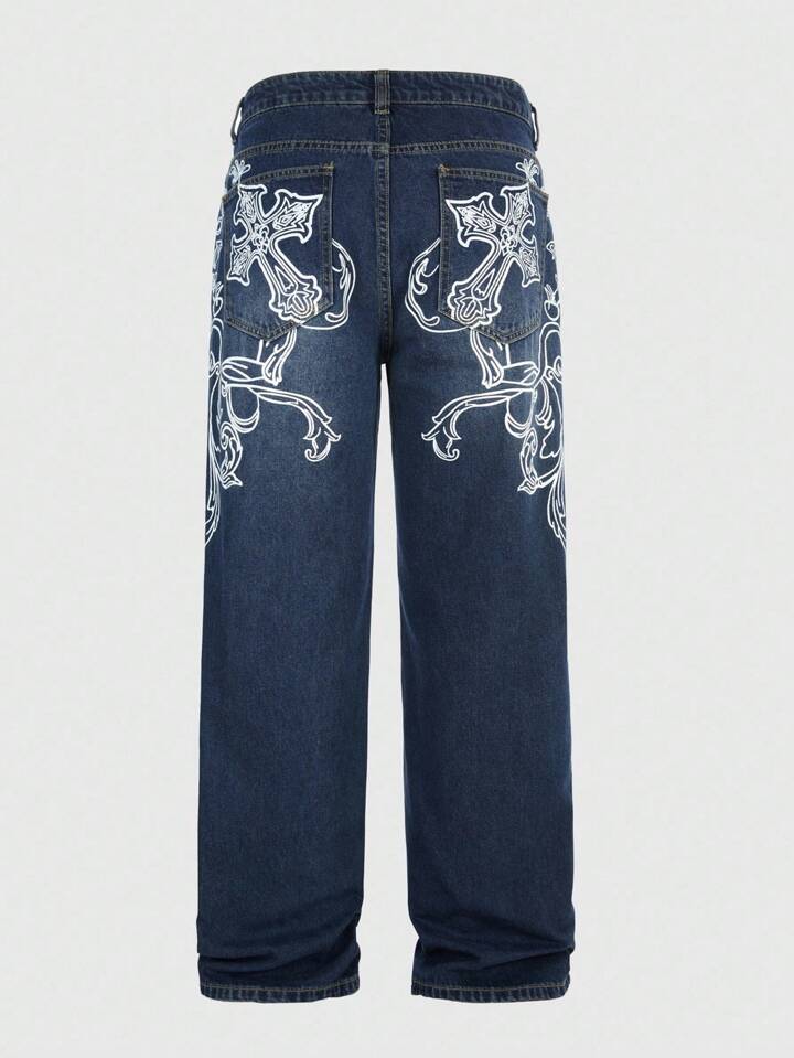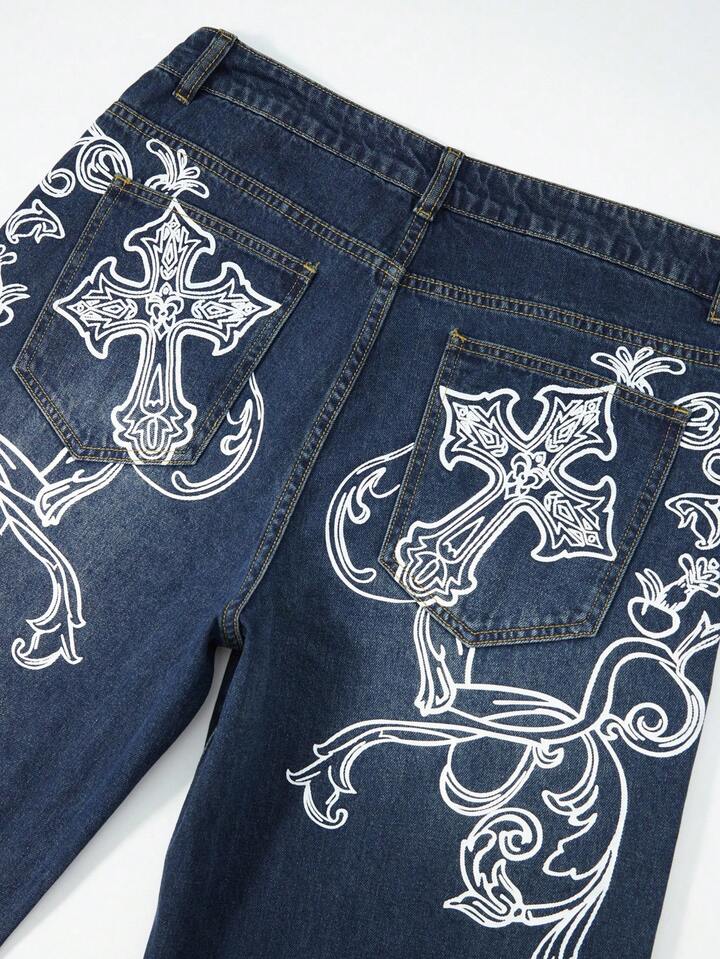 Goth Jeans décontractés à coupe ample et jambes larges avec motif croix pour hommes