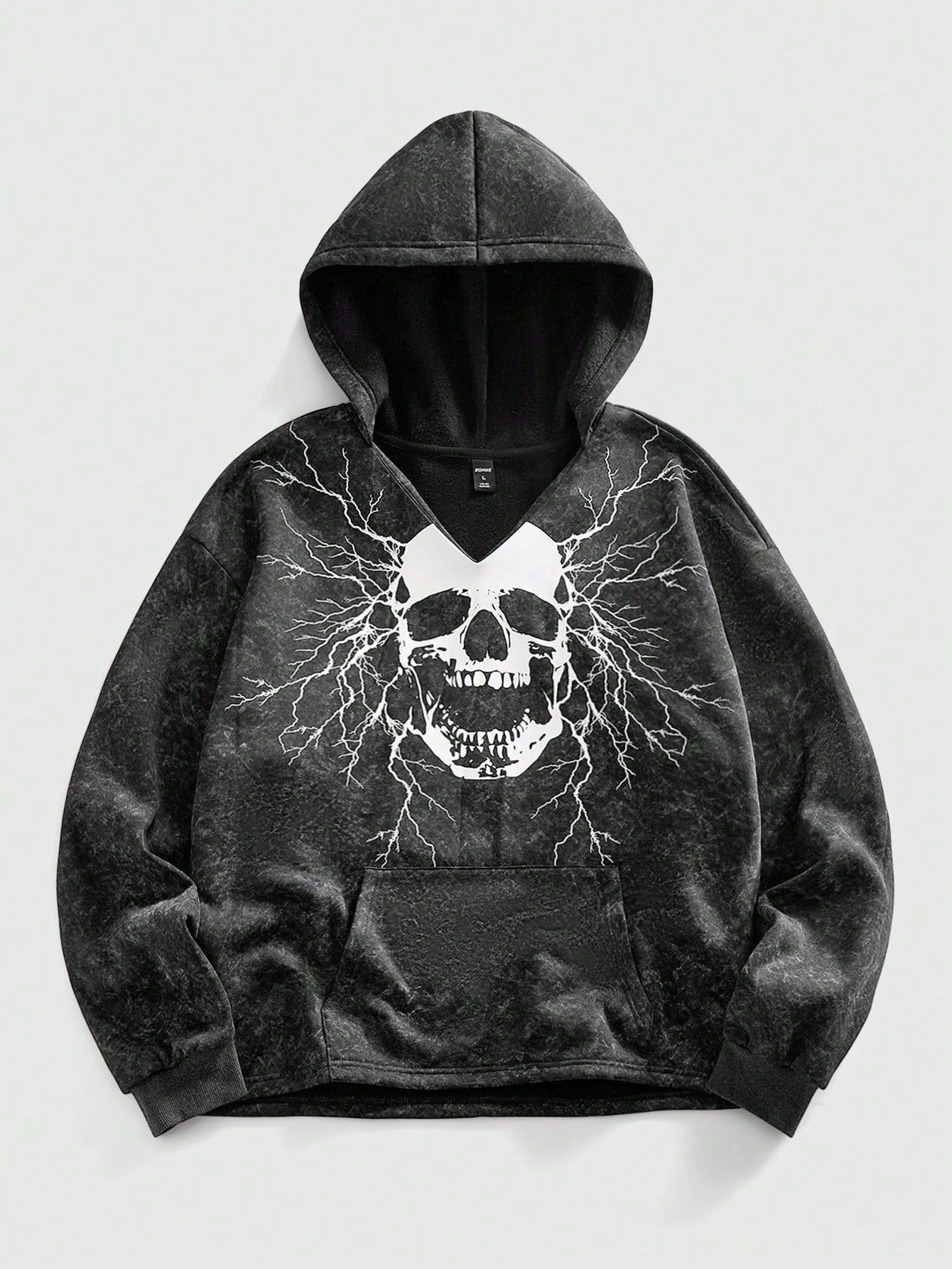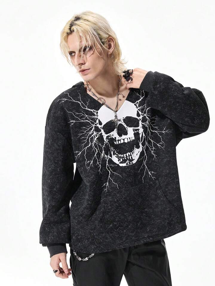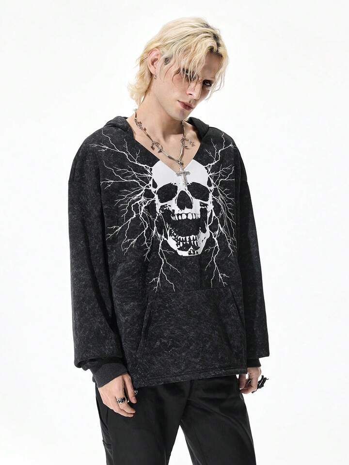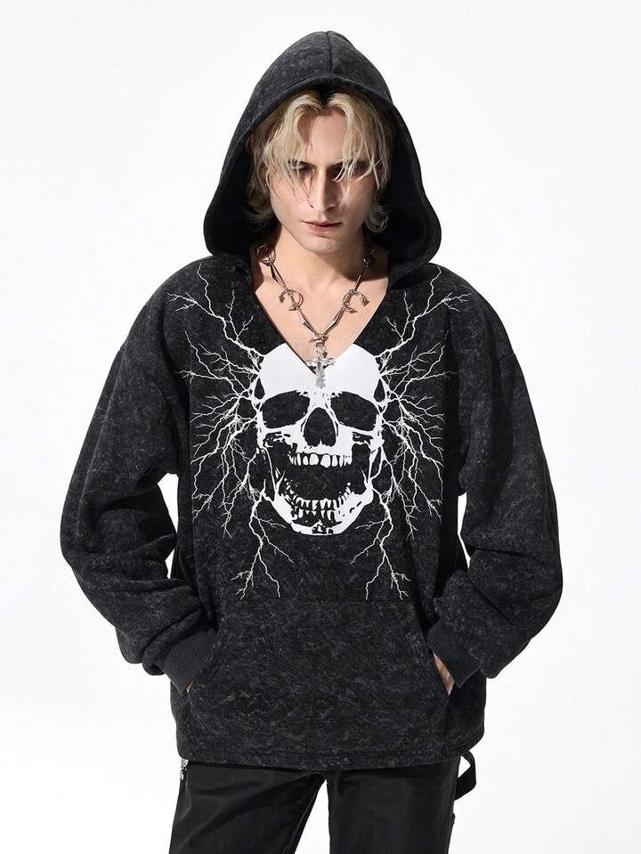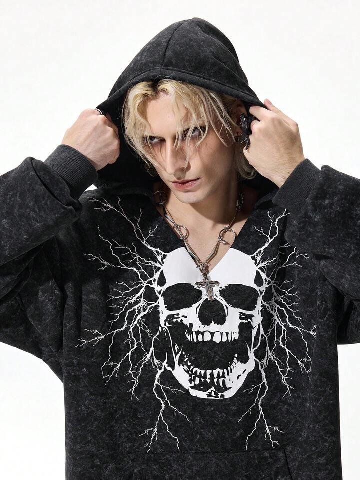 Goth sweat-shirt à capuche décontracté pour homme avec imprimé crâne sombre