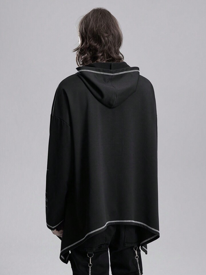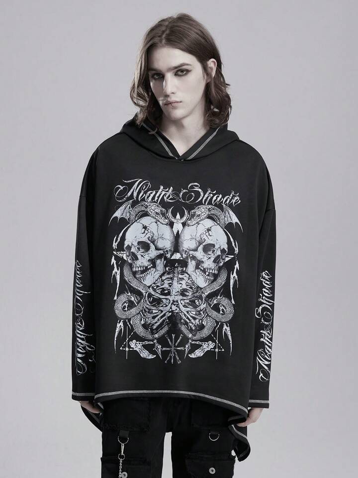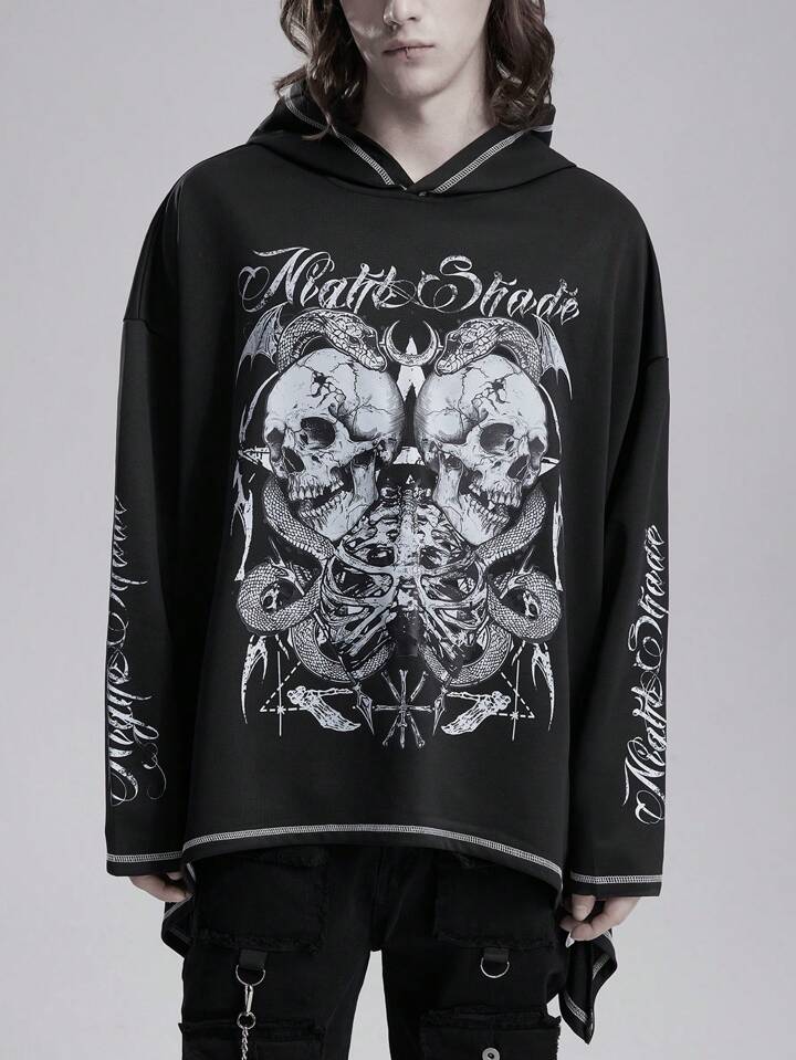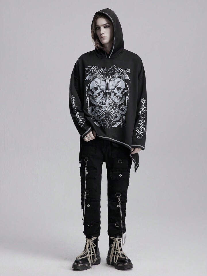 Goth sweat-shirt à capuche avec imprimé tête de mort et ourlet asymétrique, mode homme