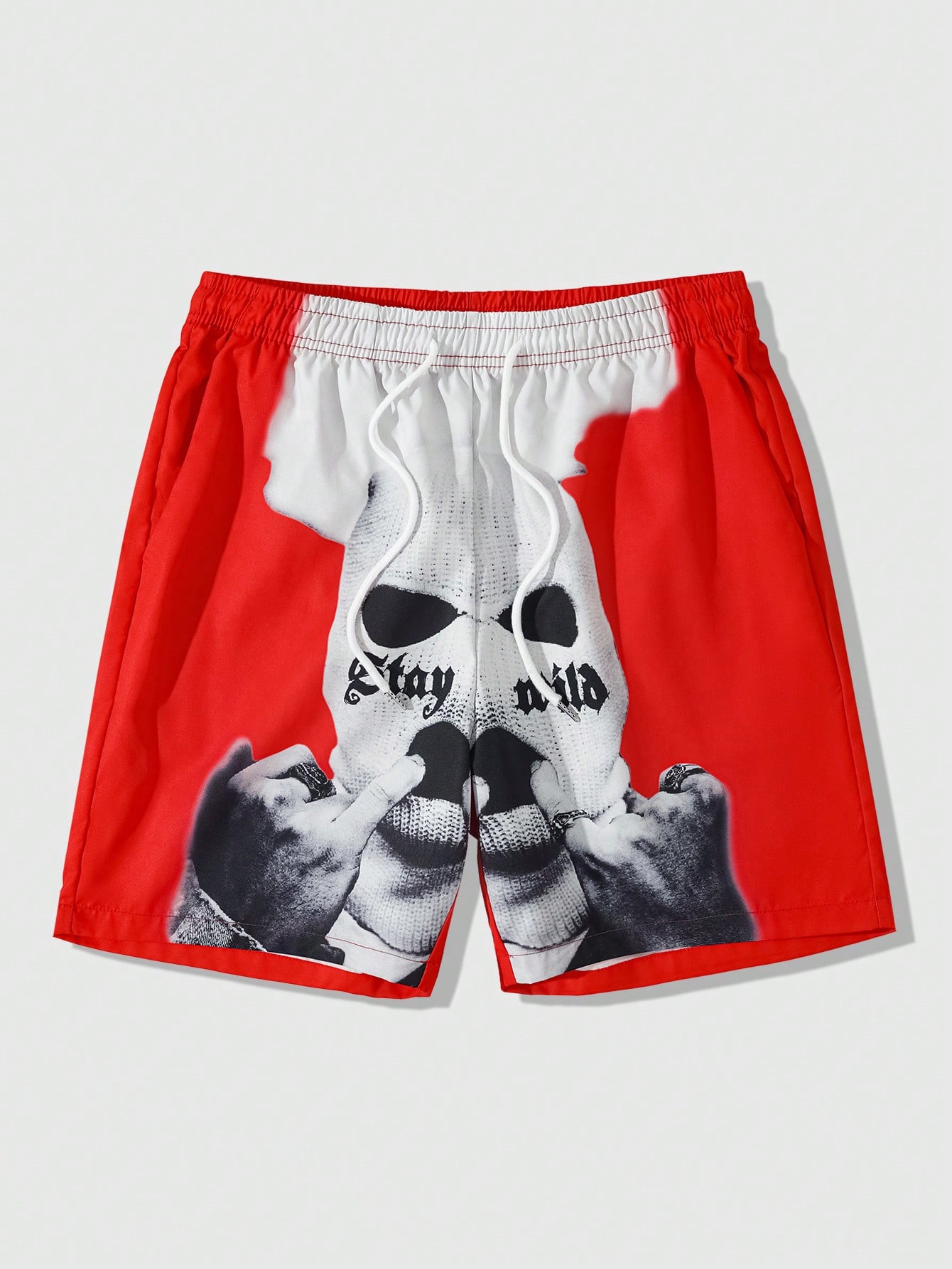 Goth Shorts décontractés amples pour hommes avec imprimé de silhouette, taille à cordon et poches