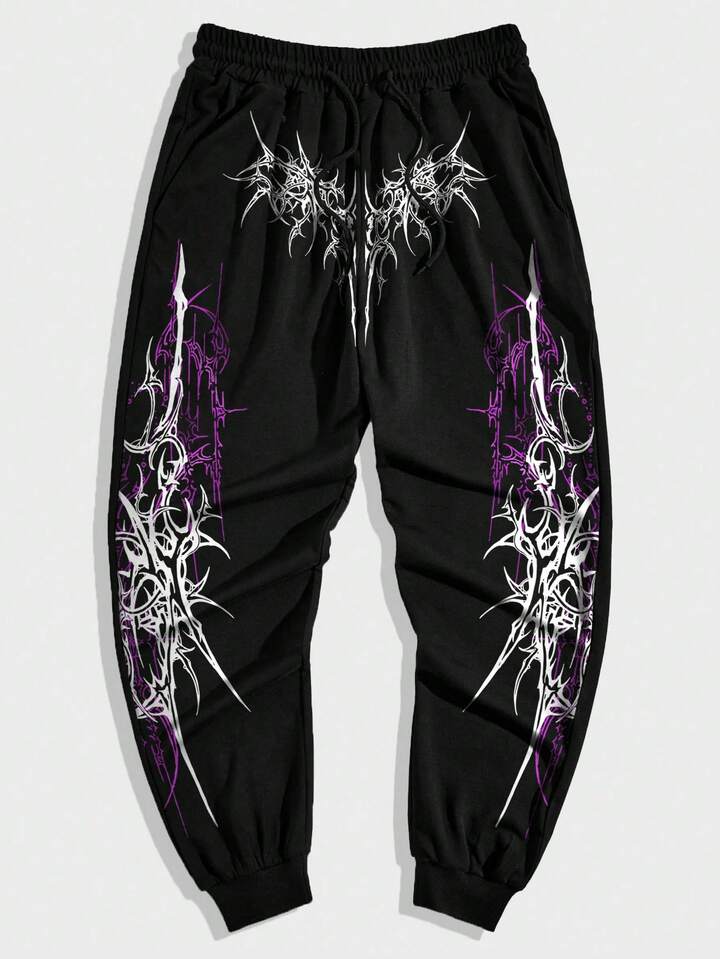 Goth Pantalon de survêtement décontracté à cordon de serrage avec imprimé graphique pour hommes