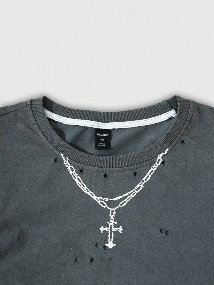Goth T-shirt slim à manches courtes avec imprimé collier décontracté pour homme
