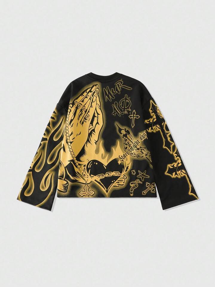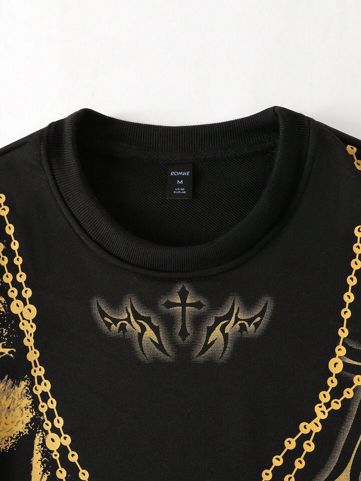 Goth sweat-shirt à capuche ample et court à manches longues pour hommes
