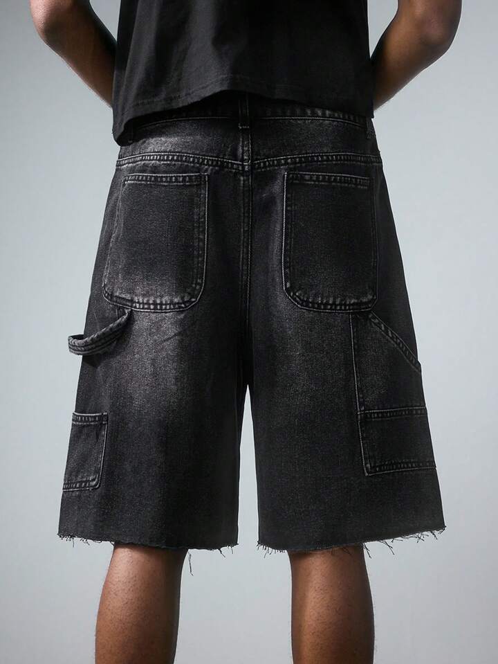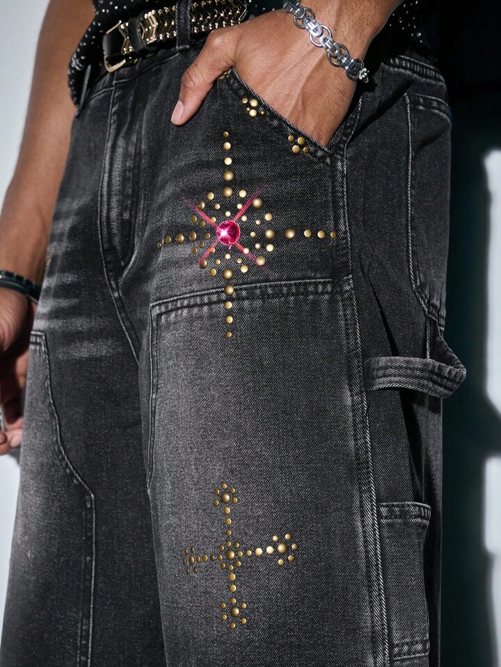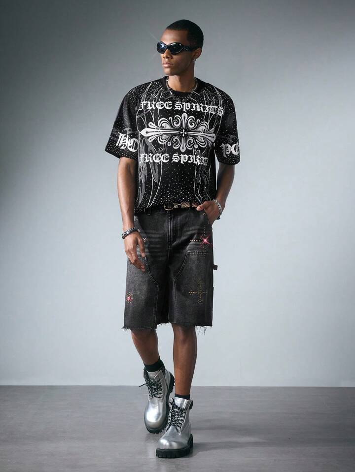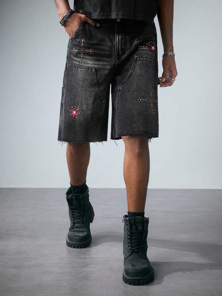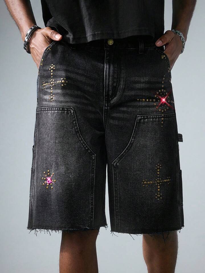 Goth Shorts en denim décontractés oversize ornés de diamants pour hommes