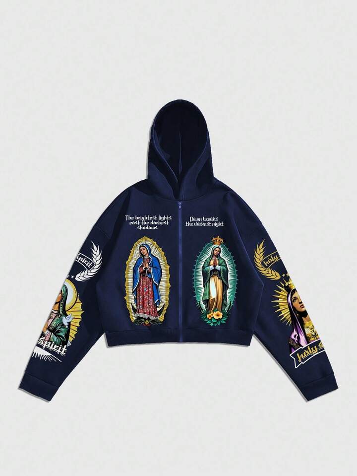 Goth sweat-shirt à capuche ouvert imprimé pour hommes, style ample et court, automne