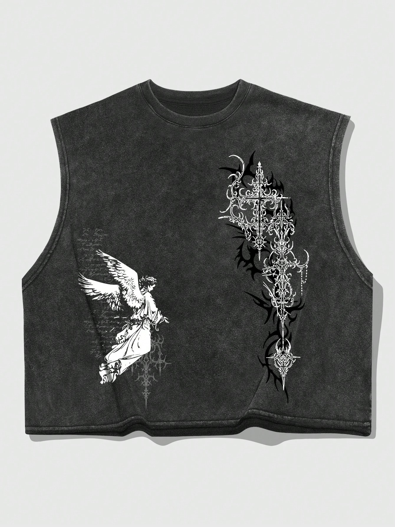 Goth Débardeur homme rétro avec imprimé ange et flocons de neige