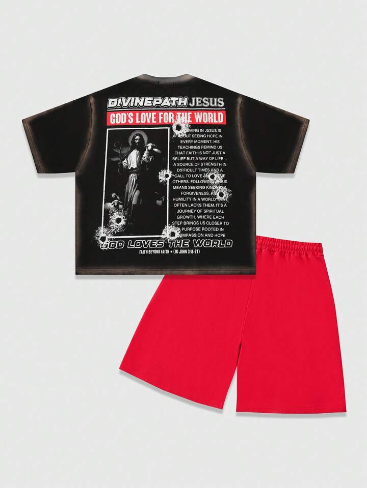 Goth Ensemble t-shirt et short d'été à la mode avec rayures et imprimé graphique pour hommes