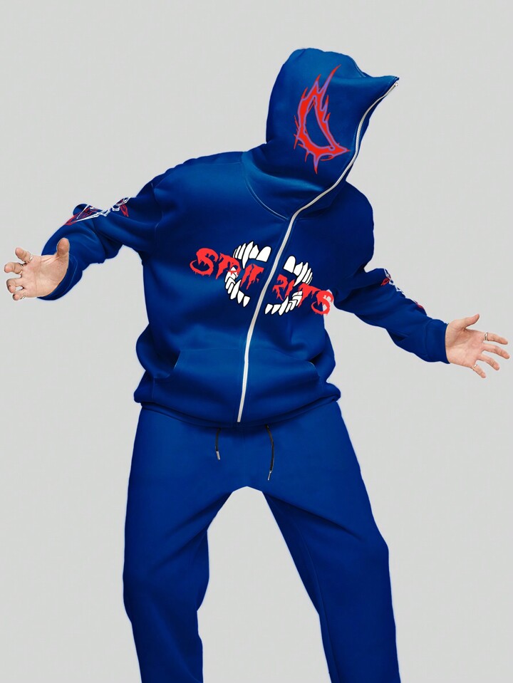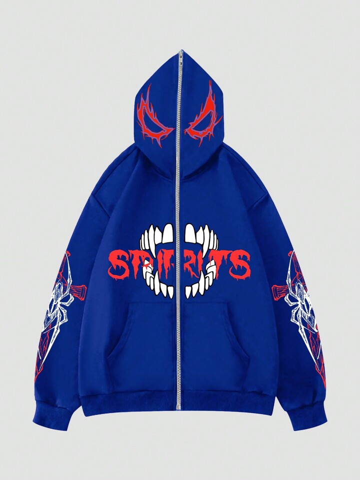 Goth Sweat À Capuche Entièrement Zippé Imprimé Dents Pour Hommes