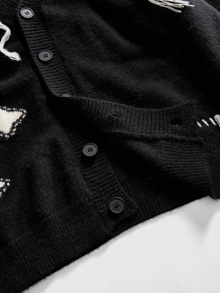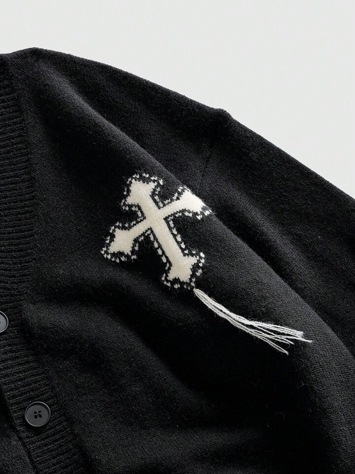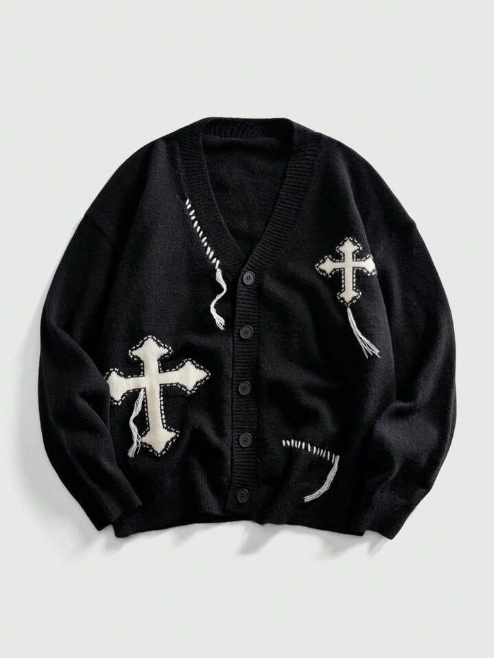 Goth Pull croisé rétro polyvalent à manches longues, col en V et ouverture devant, tricoté, pour homme