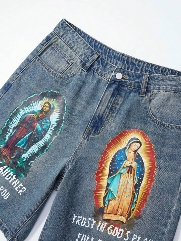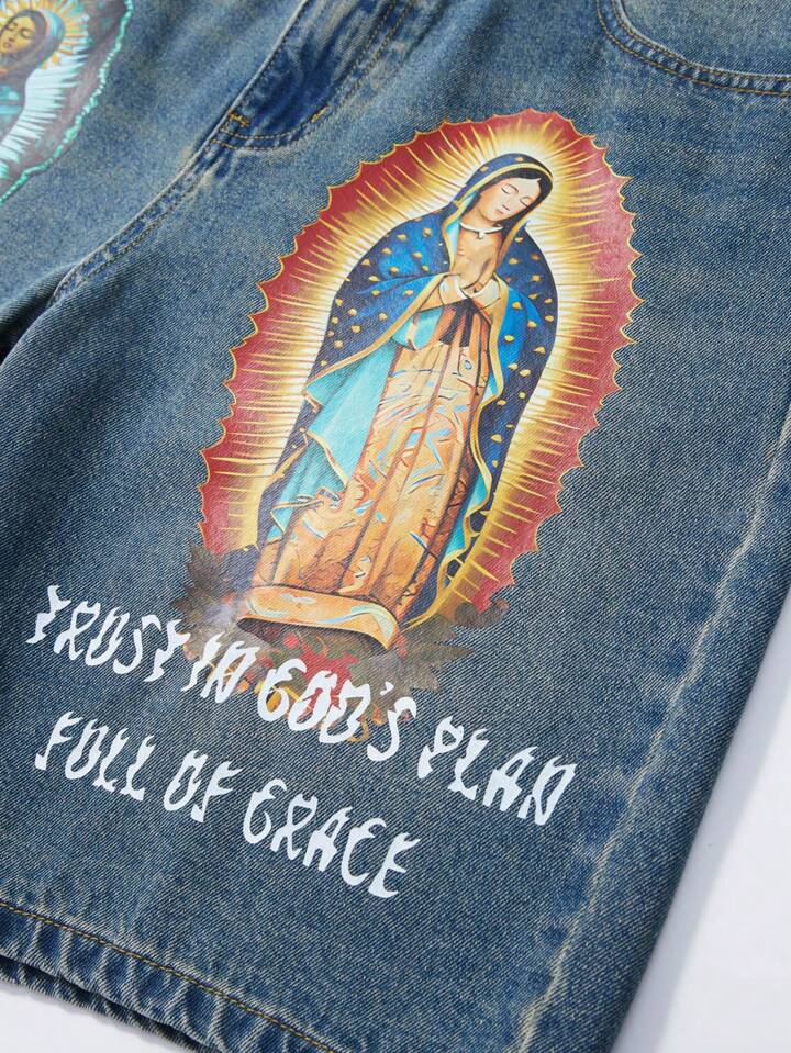 Goth Shorts en denim décontractés et amples avec slogan graphique et poche pour hommes