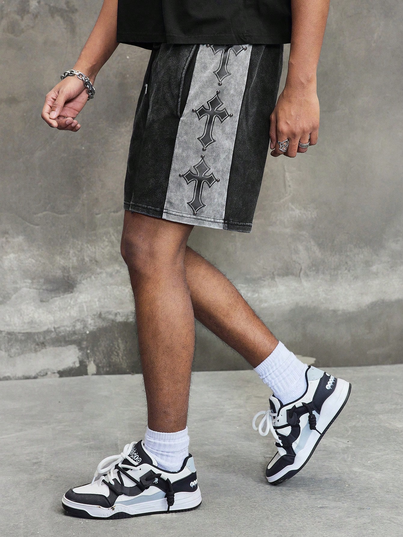 Goth Short décontracté ample à imprimé croix avec poches pour hommes