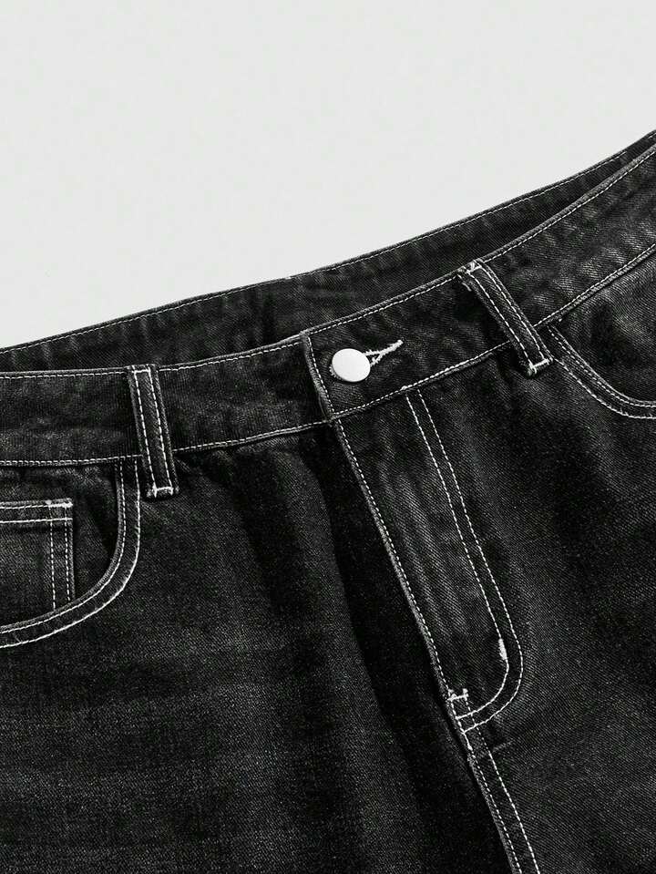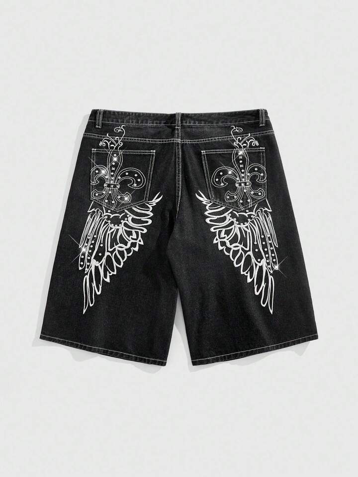 Goth Pantalon en jean décontracté décontracté 3/4 avec poche à motif d'aile, coupe ample et jambe large pour hommes