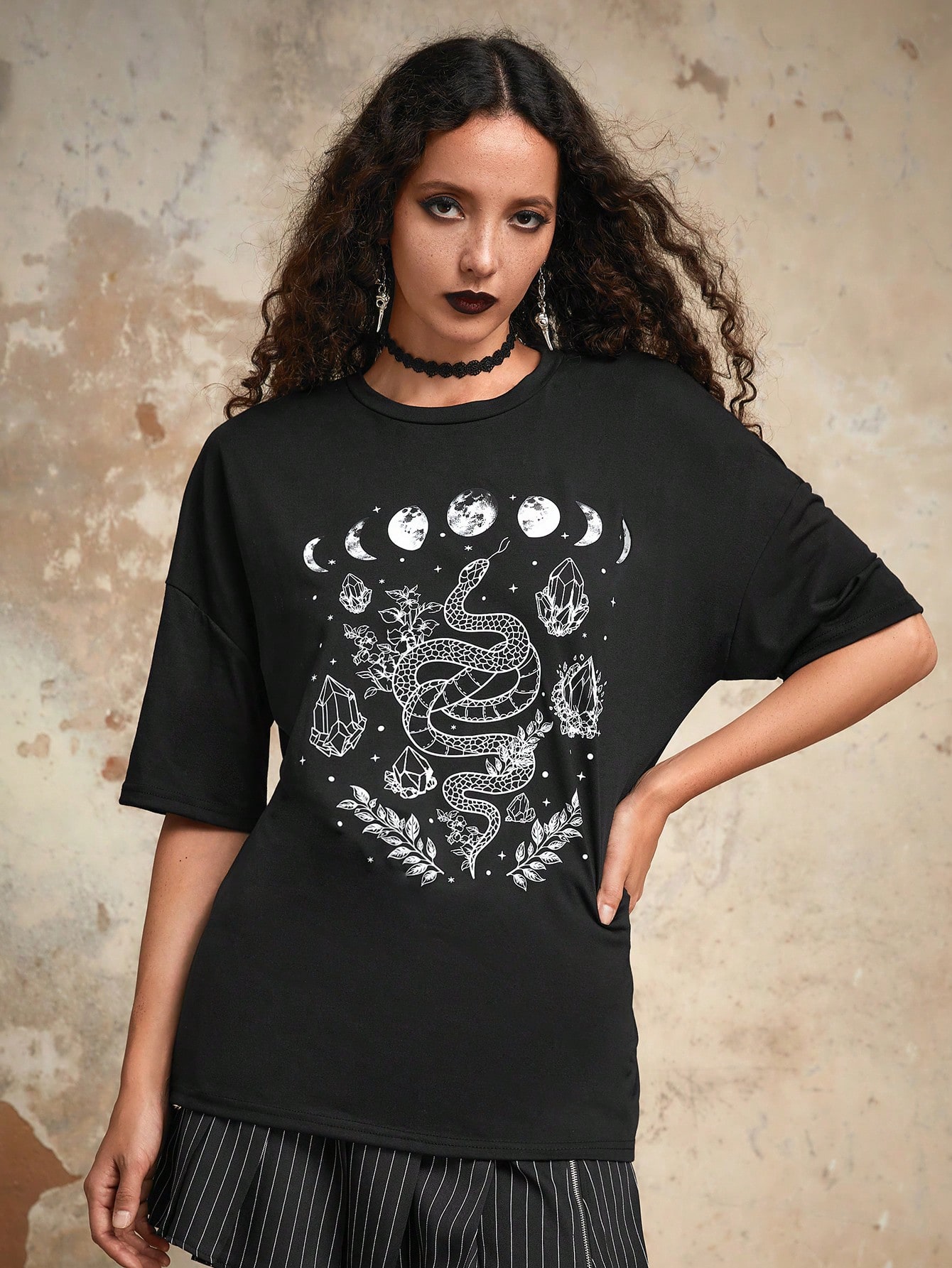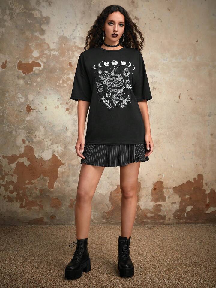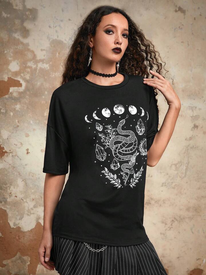 Goth T-shirt Lune & Serpent Graphique