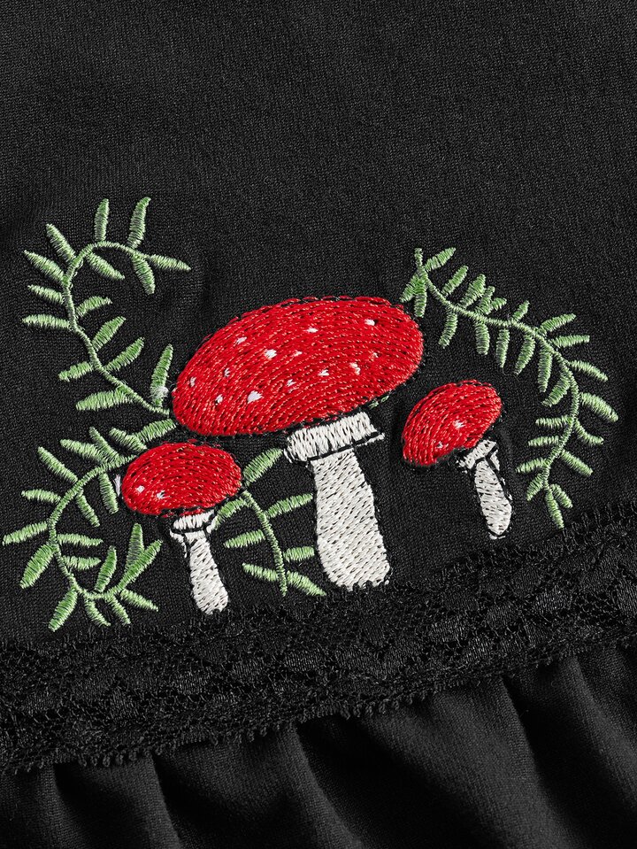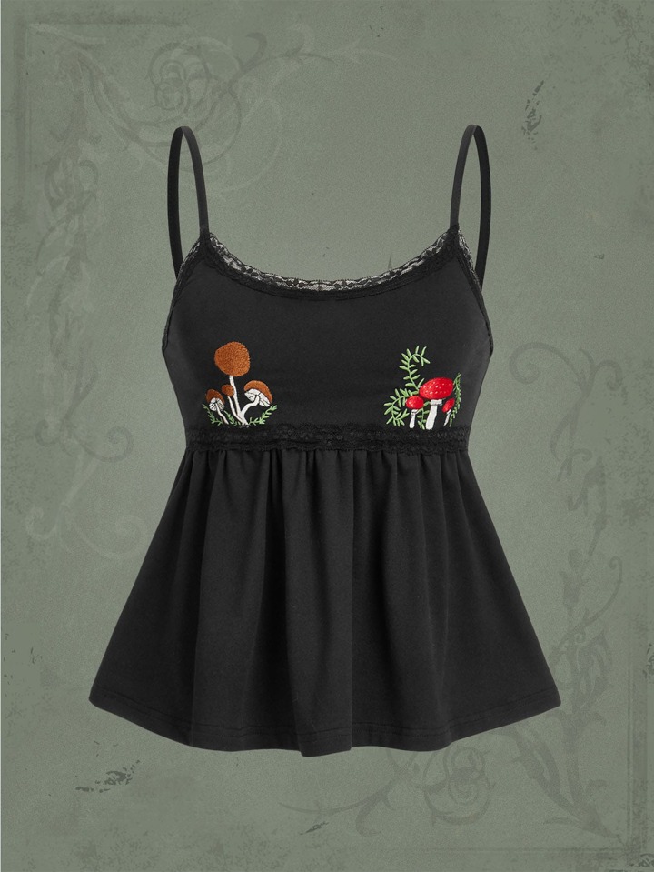 Goth Top À Fines Brides À Broderie Champignon En Dentelle