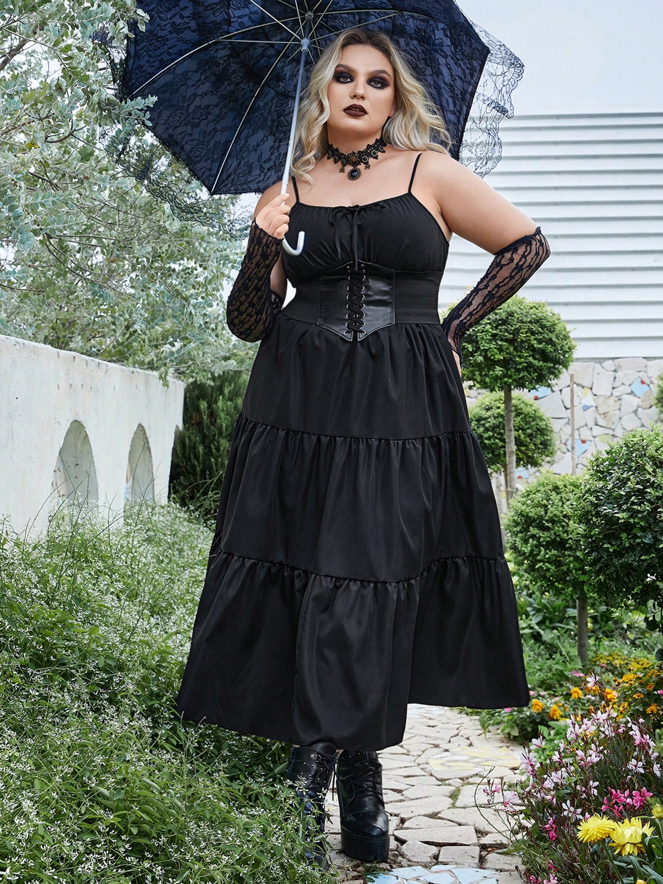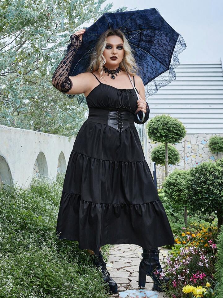 Goth Plus Robe À Fines Brides À Nœud Papillon À Volants Sans Corset