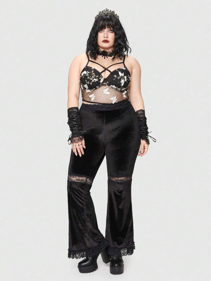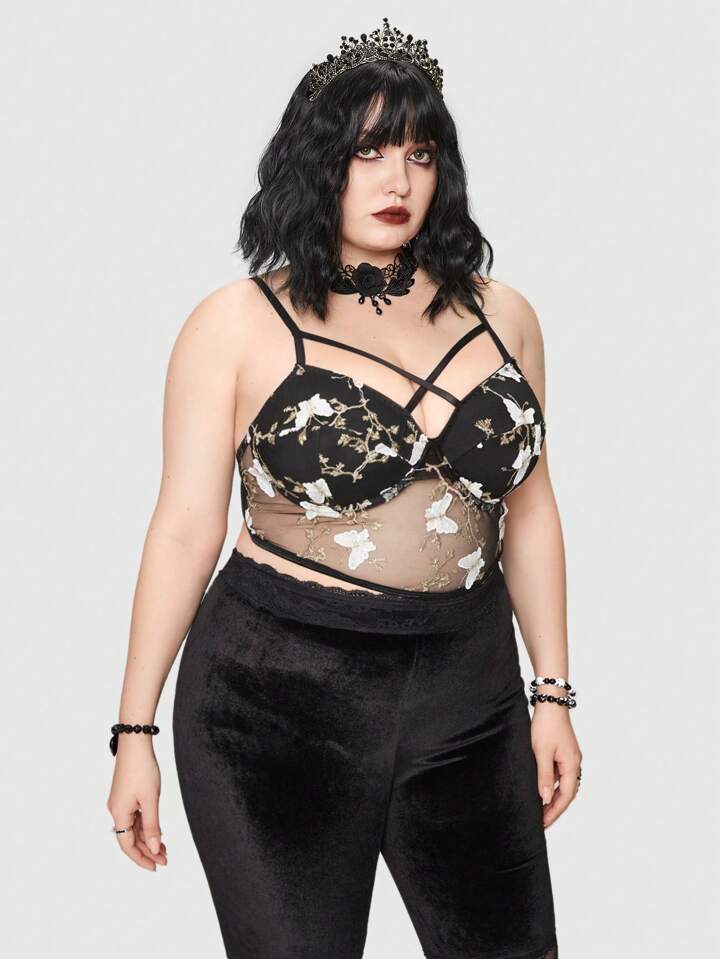 Goth Plus Top À Fines Brides À Broderie Papillon En Tulle Sans Gants