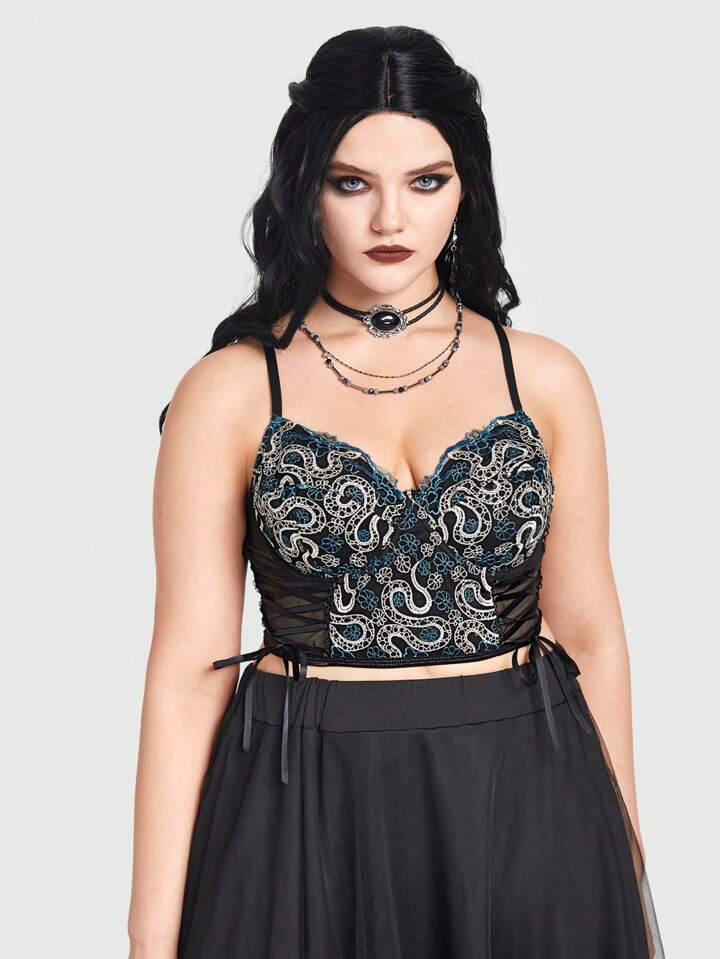 Goth Plus Top À Fines Brides Imprimé Floral En Tulle