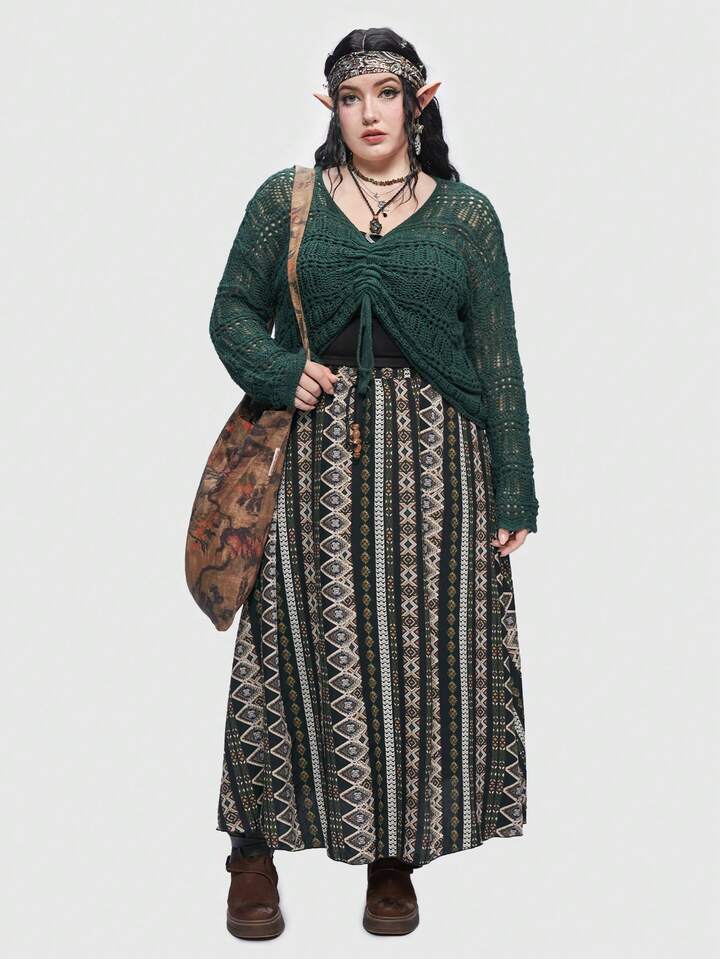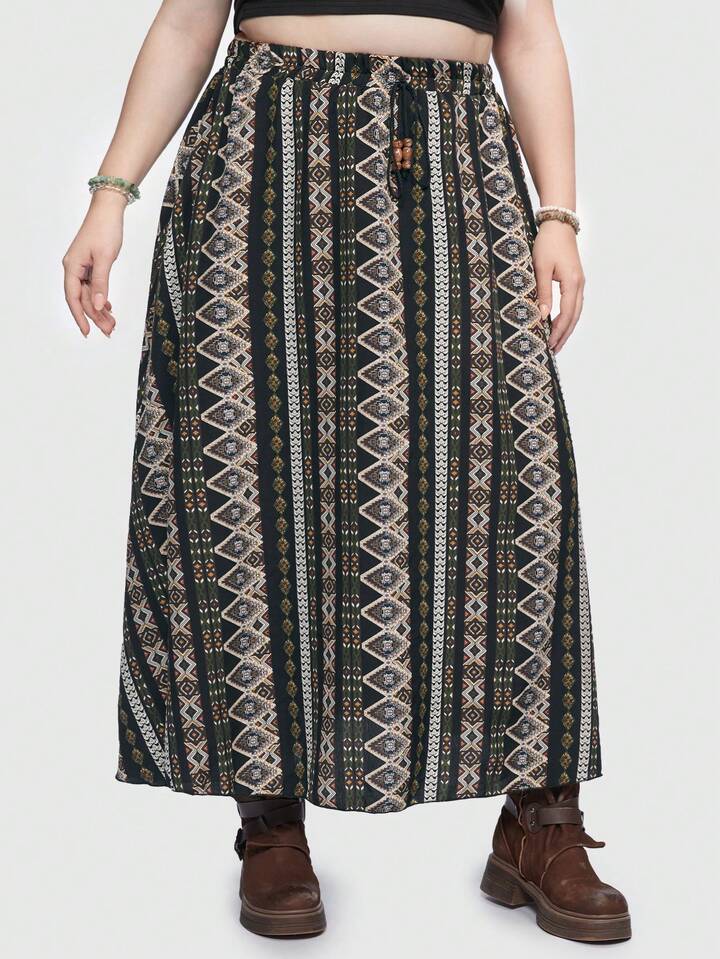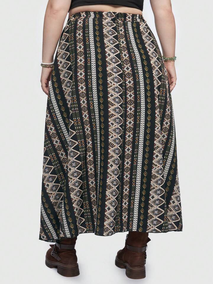 Goth Plus Jupe Imprimé Géométrique Taille Élastique