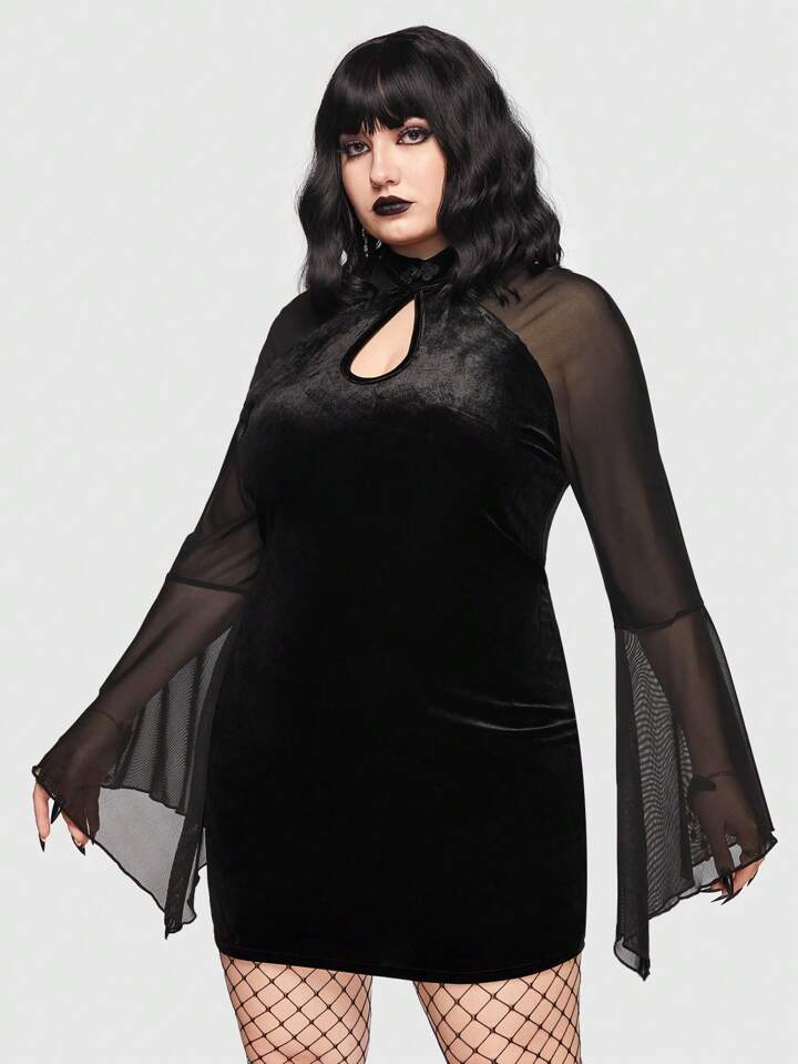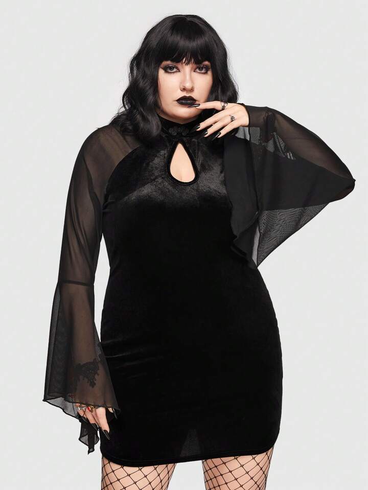 Goth Plus Robe Moulante Encolure Trou De Serrure Avec Tulle En Velours