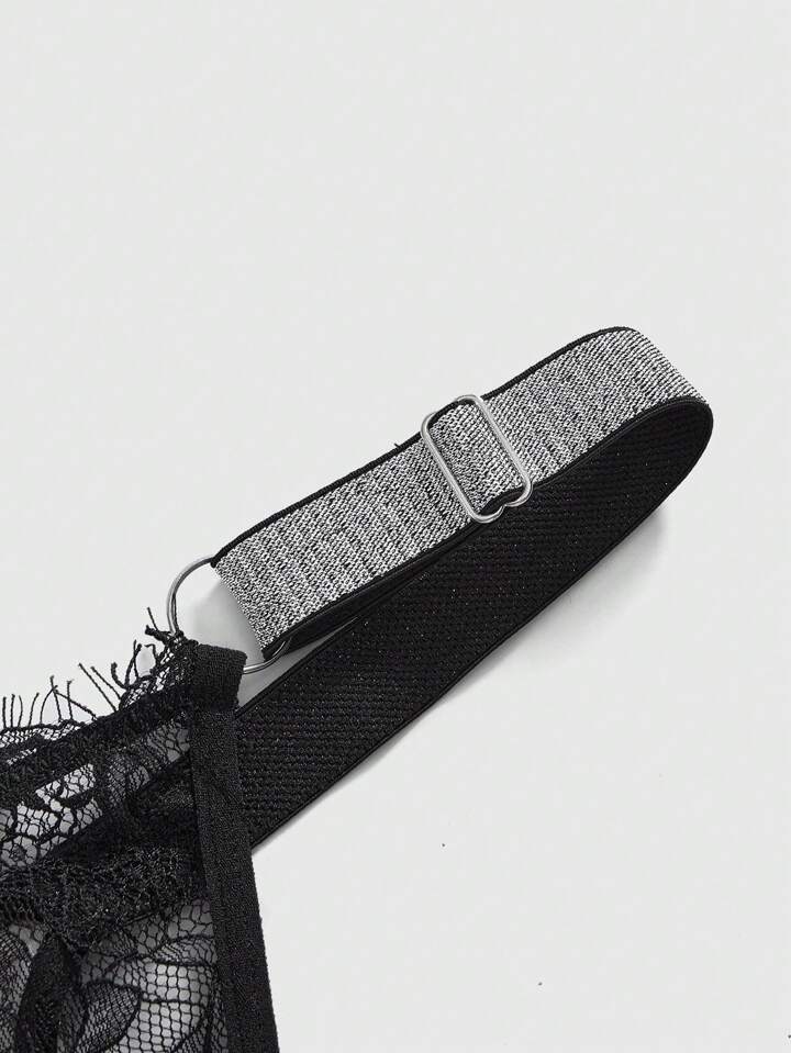 Goth Tanga grande taille en dentelle noire à imprimé léopard avec brides en ruban argenté