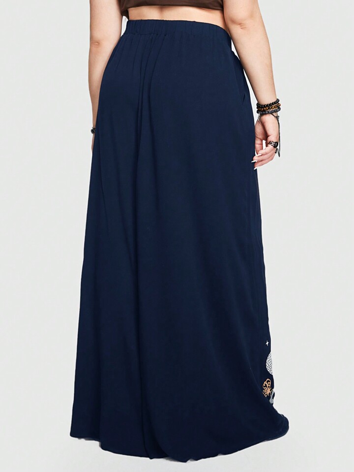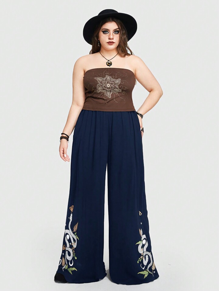Goth Pantalon à jambes larges imprimé peau de serpent bleue et plante pour femme grande taille style de vacances d'été