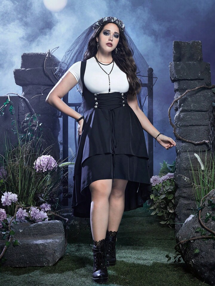 Goth Plus Robe Salopette Unicolore Asymétrique (Sans T-Shirt)