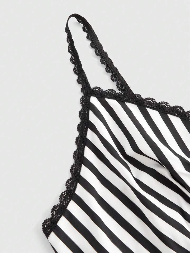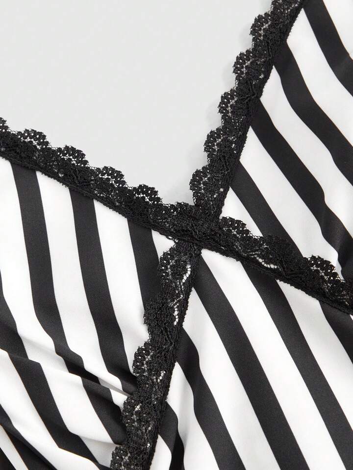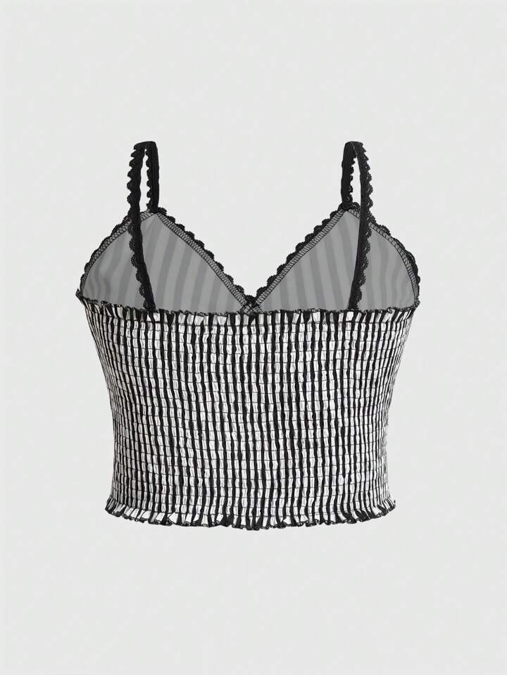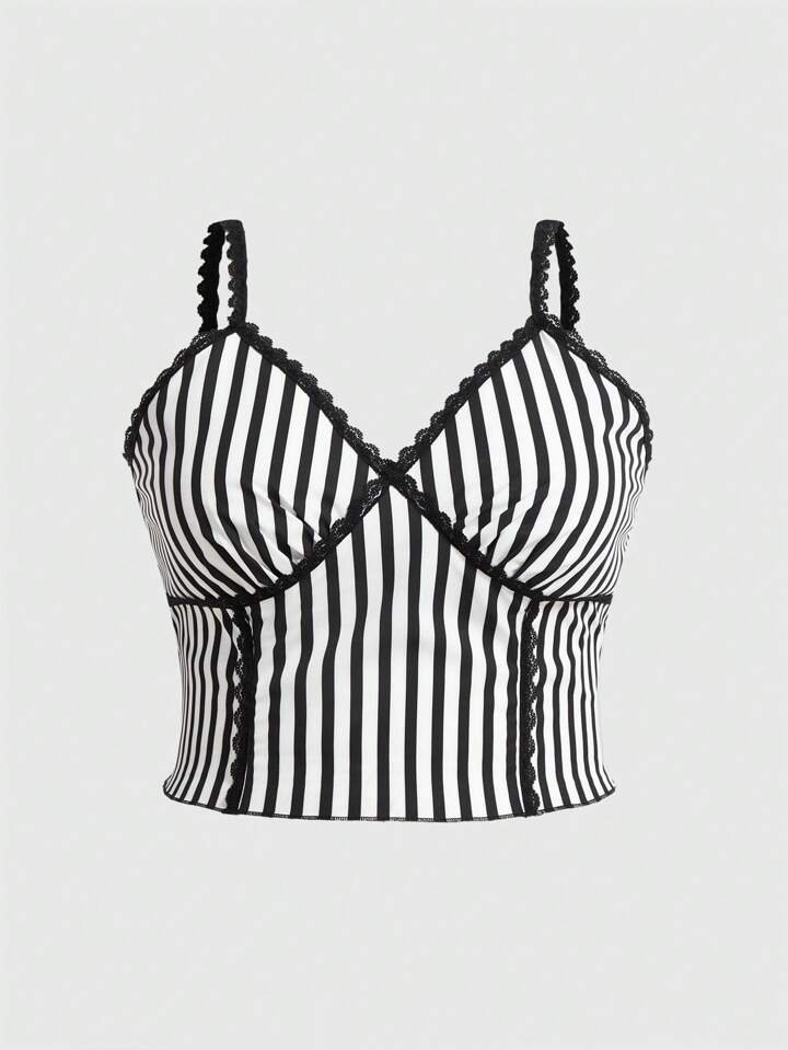 Goth Plus Top À Fines Brides À Rayures En Dentelle