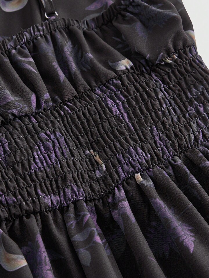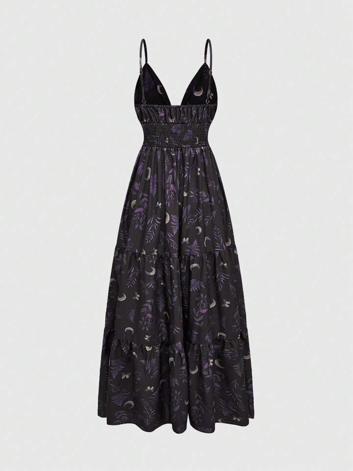 Goth Robe à bretelles fines avec impression pleine de lune et de plantes de style rétro