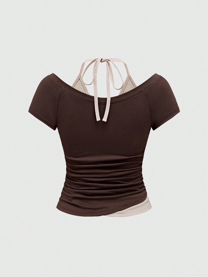 Goth T-shirt femme 2 en 1 à taille resserrée avec imprimé rétro