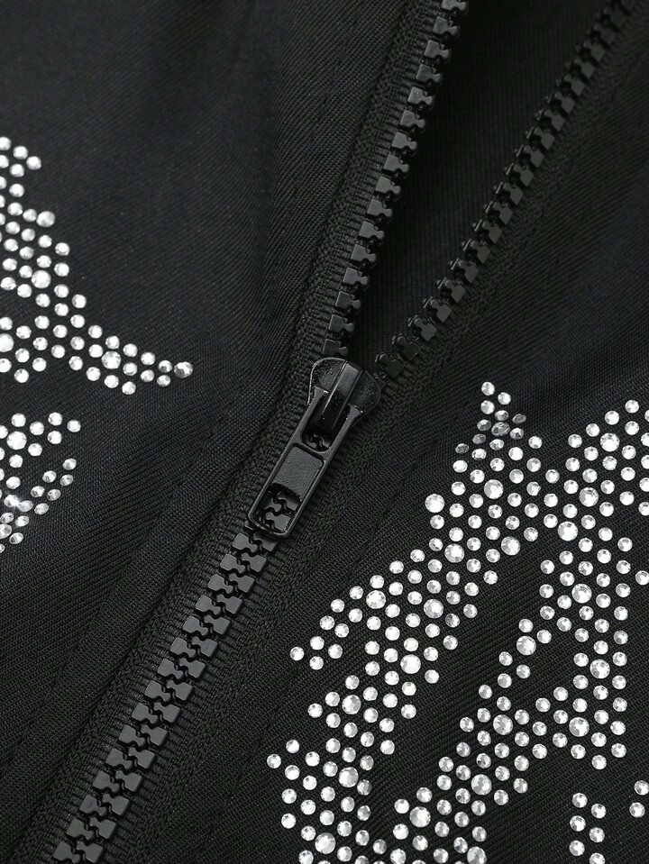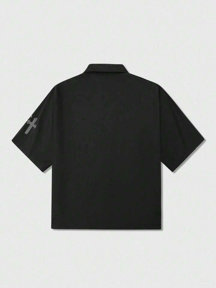 Goth Chemise d'été décontractée à zip ornée de strass graphique pour hommes, à la mode